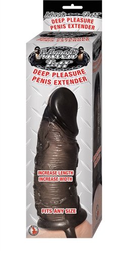 The 5.5 inch hollow inside of this sleeve fits most cock sizes, the soft TPR material hugs and holds most shafts without discomfort. This sleeve is held in place via the stretchy ball strap for added security and less slippage while you thrust. The tip of this sleeve is semi-solid, but still soft, for an extra satisfying inch to reach new depths into your lover.