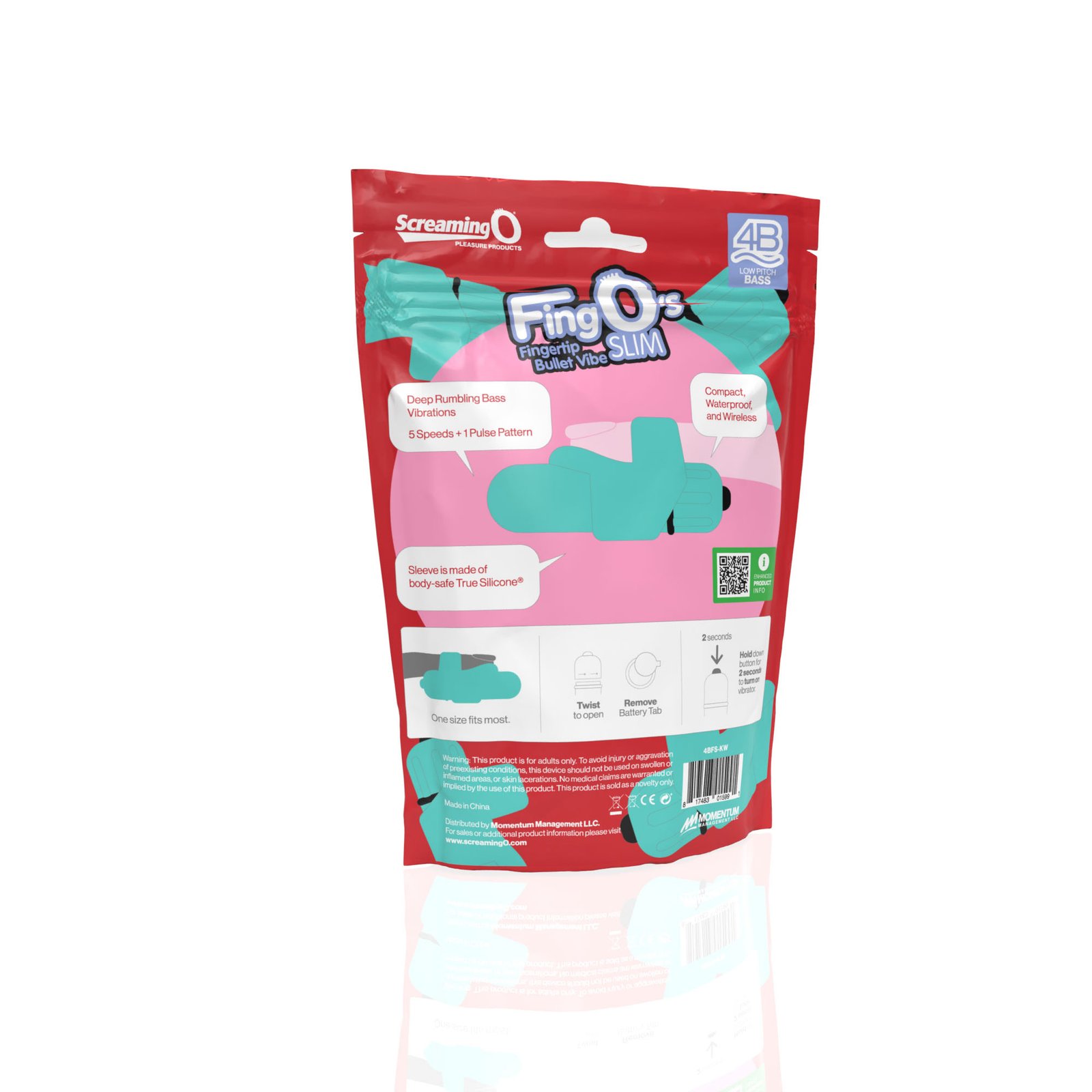 Put pleasure at your fingertips with the 4B FingO Slim, a sleek finger vibe powered by the new 4B Bullet! Featuring a unique 6-function deep rumbling motor, the 4B FingO Slim offers power, penetrating vibrations and turns your finger into your new favorite sex toy and its 100% waterproof, too! The 4B FingO Slim is a compact and portable mini vibe that makes it easy to incorporate powerful massage to almost any sex position without interruption or skipping a beat. Simply stretch the convenient loop around your finger to keep it securely in place during any intimate act that could use a vibration boost, even in the bath or shower!