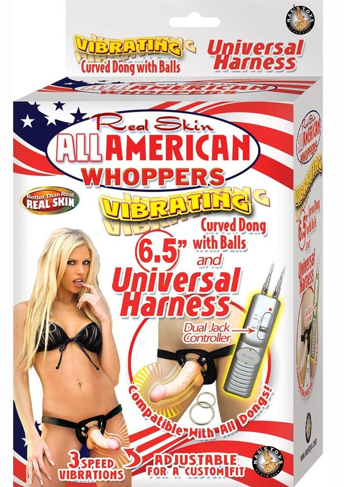 All American Whoppers Vibrating 6.5-Inch Dong With Universasl Harness – Flesh
