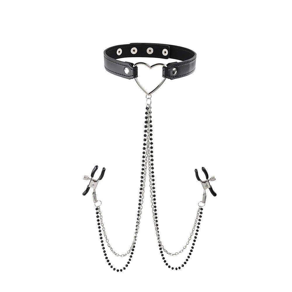 Introduce the teasing torment of nipple play to your next scene with the Amor Nipple Clamps. Equipped with tension adjustments, you or your partner can easily control the pleasure and the pain. The heart choker adds a delectably romantic touch to this BDSM must have.