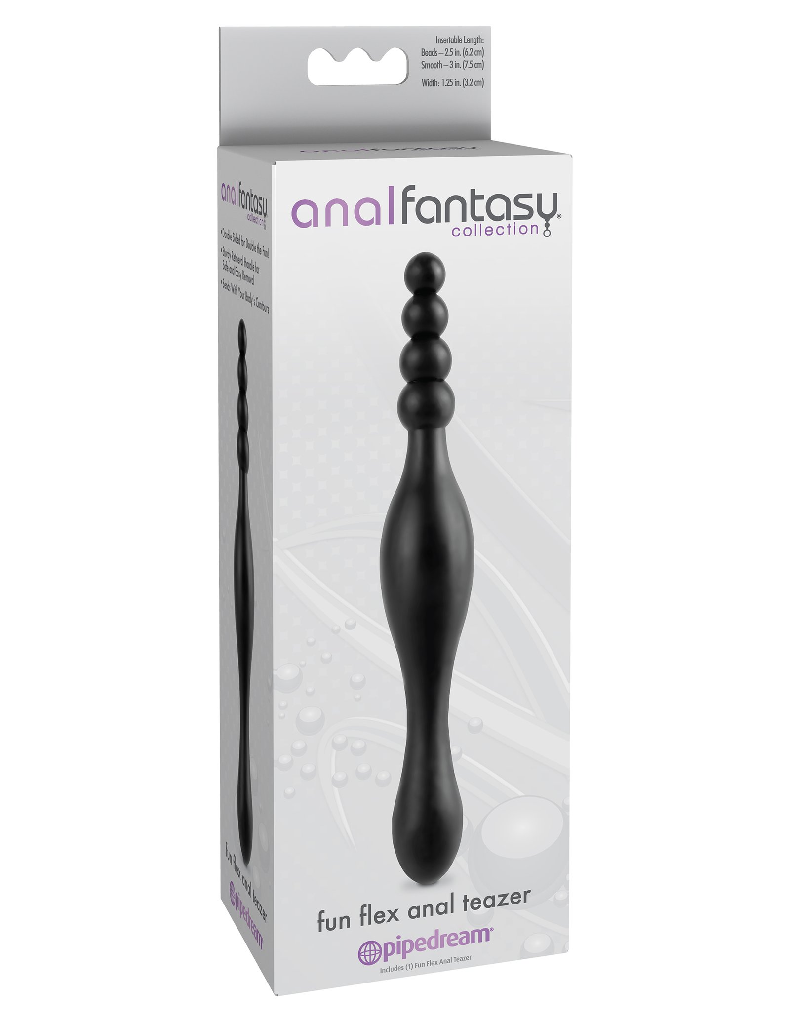 The Fun Flex Anal Teazer features two ends that are both suitable for fun. Start out with the smooth tapered shaft before graduating to the beaded shaft which features a tip of just .5-inches to ease entry before gradually expanding to .75-inches. The flexible shaft bends with your bodys contours to hit just the right spot while each end acts as a sturdy retrieval handle for safe and easy handling.