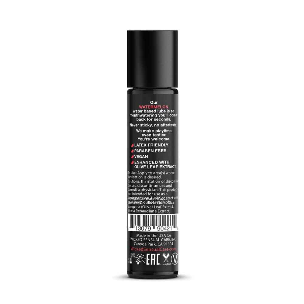 Bring summertime into your sex life! Kissable, lickable, and delicious, Wicked Aqua Watermelon personal lubricant adds subtle and delicious natural flavors to enhance oral pleasures. Light and silky, this water-based formula is the perfect sensual combination of an elegant lubricant and a flavor sensation. Never sticky and without an aftertaste, Wicked Aqua Watermelon satisfies your sweet tooth and your intimate desires all in one amazing pleasure product. Oral sex never tasted so good. Whether you are giving or receiving, Wicked’s flavors will give you a new sexy confidence.