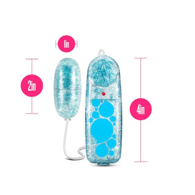 Add a little sparkle to your play! Perfect for solo or partner adventures, B Yours Glitter Power Bullet is a powerful mini vibrator with adjustable speed control. The waterproof bullet can be washed in the sink (the controller is not waterproof). Made of non-porous ABS plastic, the B Yours Glitter Power Bullet is smooth to the touch and body safe. Requires 2 AA batteries (Not included).