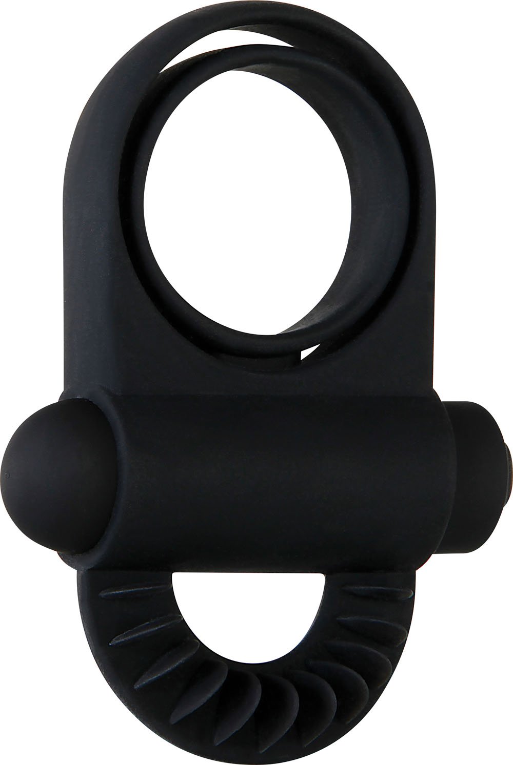 One loop slides to the base of the penis and one goes around the balls in this tantalizing design that features a rechargeable vibrating bullet tucked inside a sleeve for powerful erotic sensations. A row of ticklers sit above the bullet vibrator to stimulate his partners clitoris, completing the mutually orgasmic experience that also gives him an enhanced, longer lasting erection.