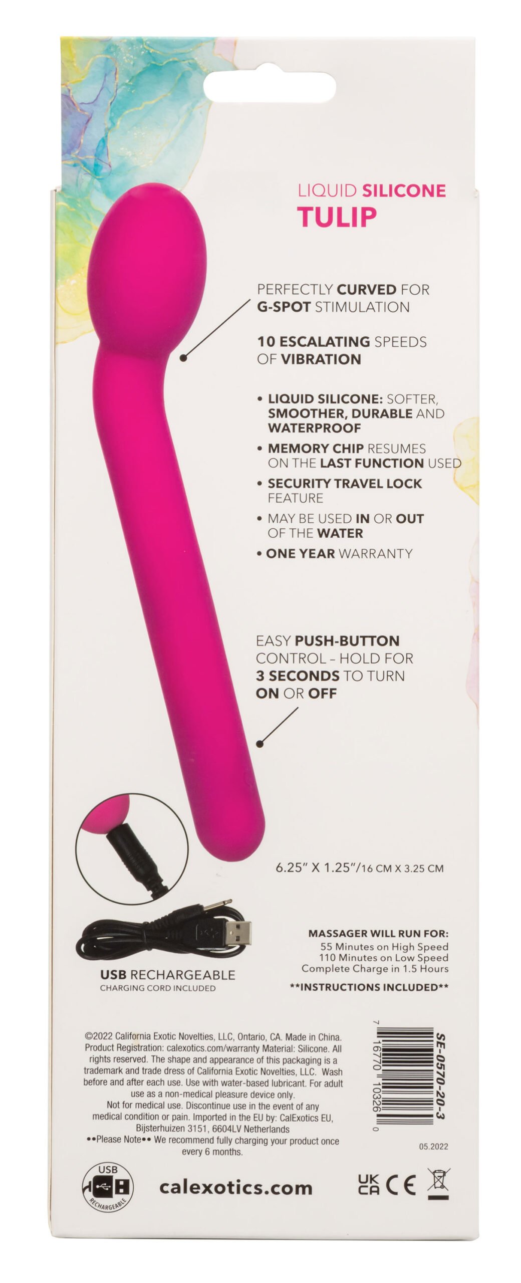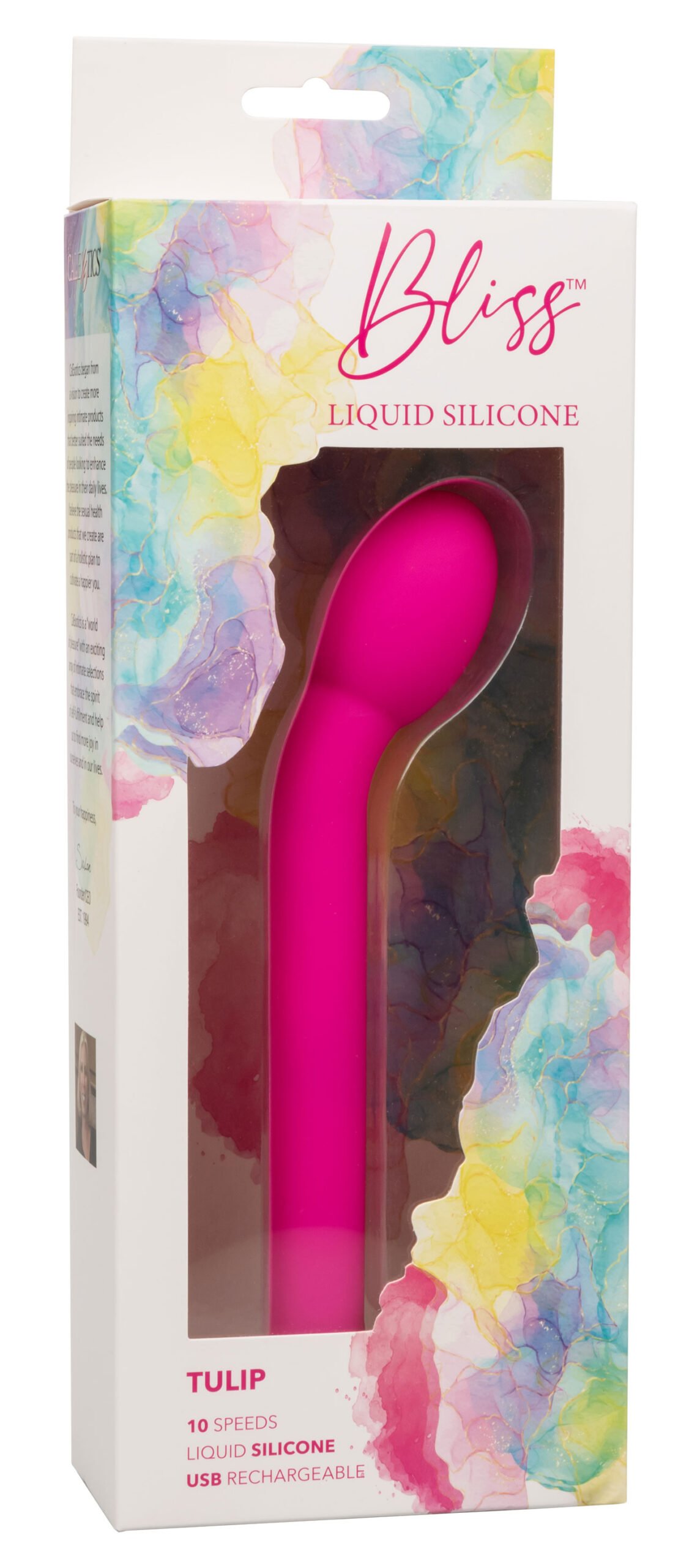 Indulge in a pleasure paradise with the teasing Bliss Liquid Silicone Tulip. This sensational vibe features a rounded tip, body-forming liquid silicone design, and 10 powerful functions of vibration. The bulb-like tip and 100% liquid silicone body are perfect for caressing internal and external sweet spots. Get playful with each increase of the 10 incremental speeds of vibration with the easy-touch control button. Effortlessly control pure pleasure with an easy-touch silicone button and hold for 3 seconds to turn on or off. The ultra-plush liquid silicone is great for exploring sensual sweet spots and intimate pleasure points with ease. Use the smooth single button control to enjoy up to 110 minutes of vibrating pleasure. Charge up your passion in only 1.5 hours by plugging the provided USB cable into the self-sealing charging port on the base of the massager.