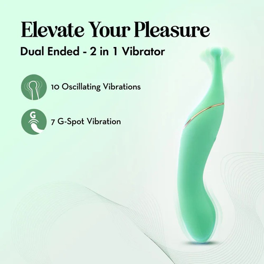 Meet Stella, your elegant companion for intimate exploration. Beautifully designed, this dual-ended wand combines 10 oscillating vibrations and 7 G-Spot vibration settings (3 speeds and 4 patterns) to ignite your deepest desires. With its targeted oscillation and deep, rich dual motor technology, Stella invites you to explore new heights of pleasure with effortless precision and grace. Designed with a sleek, ergonomic G-Stim ridge, Stella enhances every touch. Its independently controlled vibration points allow for a fully customizable experience. Crafted from 100% body-safe silicone and wrapped in satin-smooth UltraSilk, Stella feels irresistibly luxurious and soft against your skin. With an IPX7 waterproof design, indulge in Stella’s pleasures during a relaxing bath or shower. Magnetic USB charging ensures it’s always ready when you are. Compact and powerful, Stella is ideal for solo or partnered play, making every encounter unforgettable. Let Stella take you all the way.