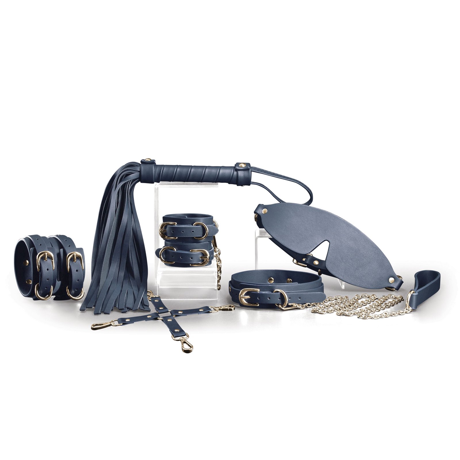 Bondage Couture brings your BDSM roleplaying fantasies to life with an all-in-one 6-piece kit of top-quality restraints and accessories, including wrist and ankle cuffs, collar and leash, hog-tie, blindfold, and whip. Made of synthetic materials and nickel-free hardware, all items are body-safe, durable, and crafted for comfortperfect for an evening of bold and imaginative play!