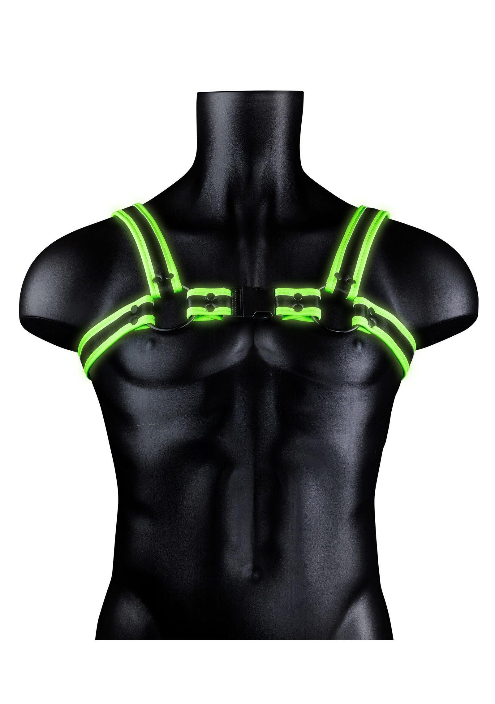 Strap yourself into this harness and maximize your masculine shape. The harness is adjustable so it fits every body type. Ouch!Glow-In-The-Darkproducts must be activated with the sunlight before enjoying it in the dark.