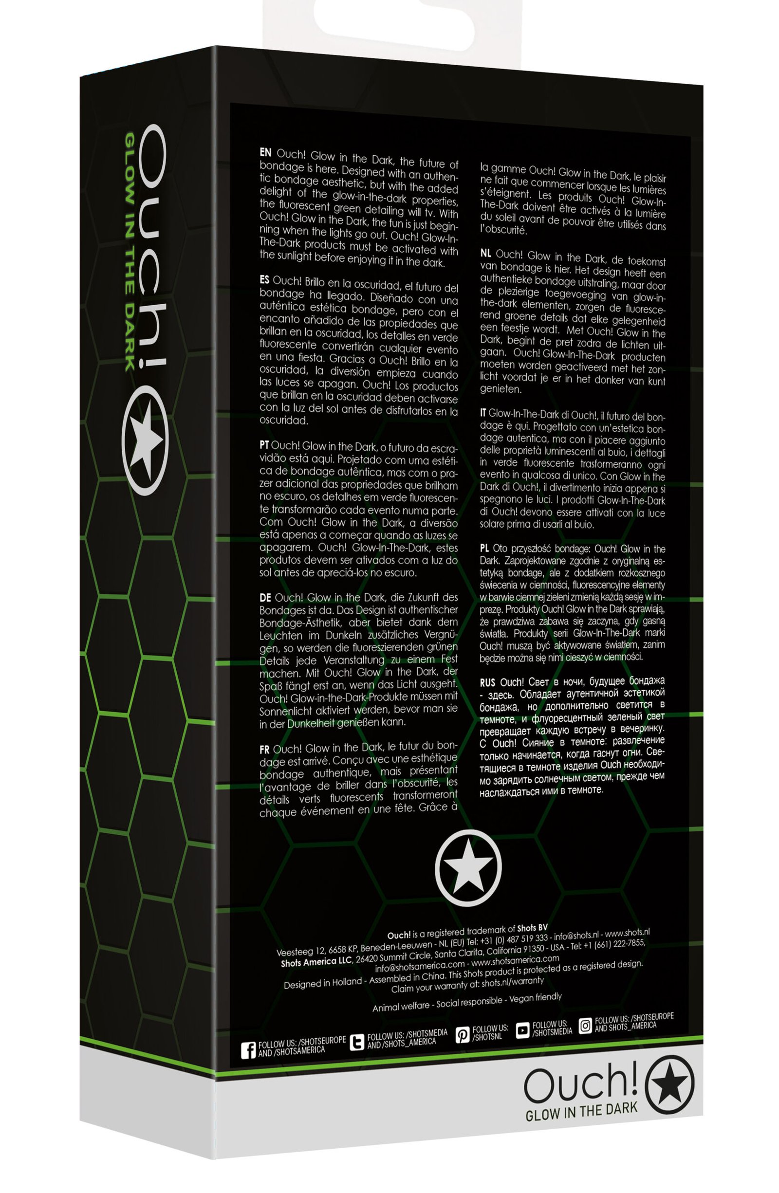 Ouch! Glow in the Dark, the future of bondage is here. Designed with an authentic bondage aesthetic, but with the added delight of the glow-in-the-dark properties, the fluorescent green detailing will turn every event into a party. With Ouch! Glow in the Dark, the fun is just beginning when the lights go out.