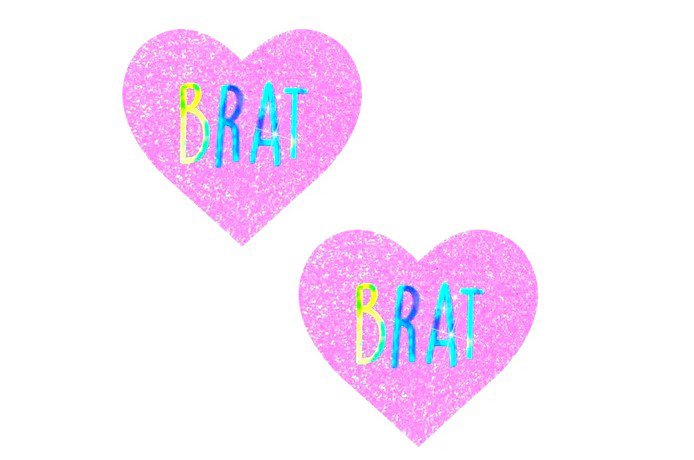 Brat Holographic Uv Light Pink I Heart U Glitter Nipple Cover Pasties