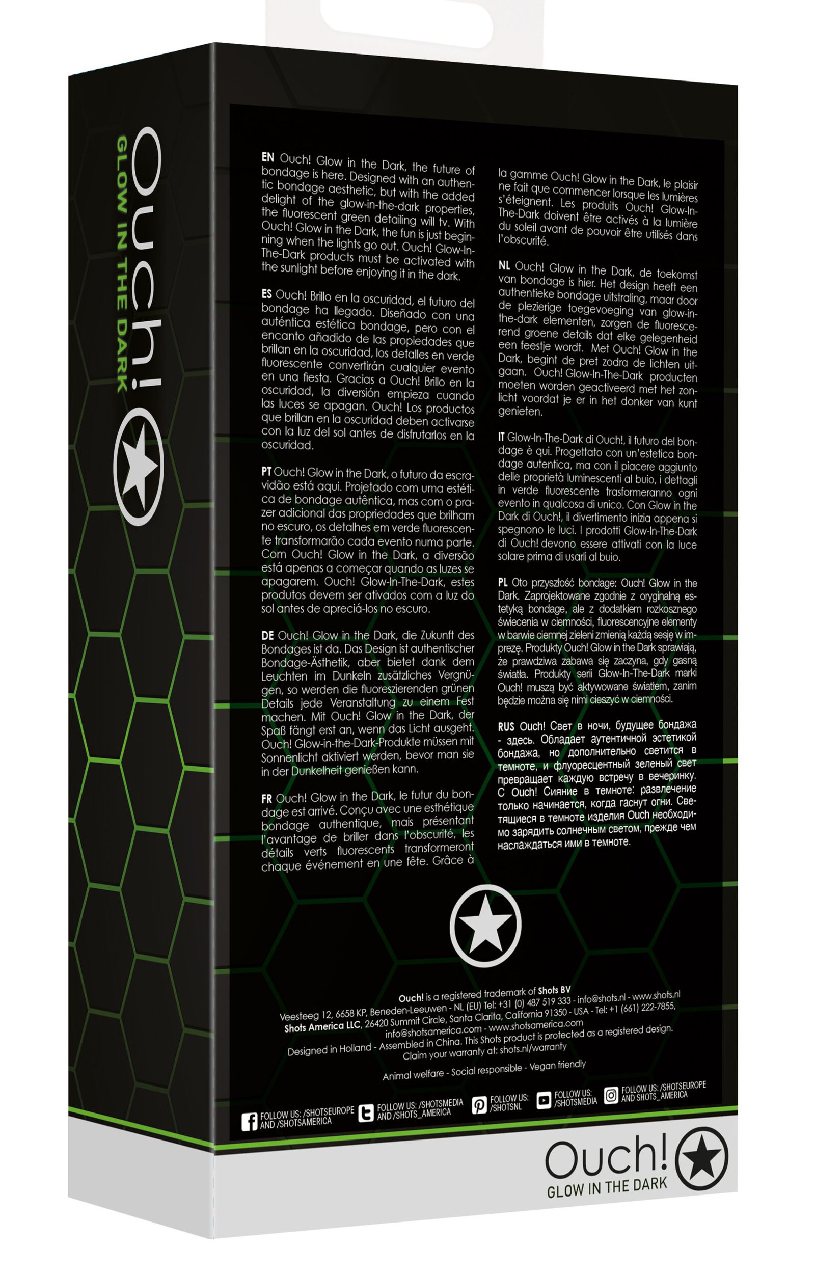 Ouch! Glow in the Dark, the future of bondage is here. Designed with an authentic bondage aesthetic, but with the added delight of the glow-in-the-dark properties, the fluorescent green detailing will turn every event into a party. With Ouch! Glow in the Dark, the fun is just beginning when the lights go out. You love a naughty game? Keep your lover quiet with this ball gag. One size fits all. Use this toy on its own, or in combination with other products from from the Glow in the Dark collection. Ouch!Glow-In-The-Darkproducts must be activated with the sunlight before enjoying it in the dark.