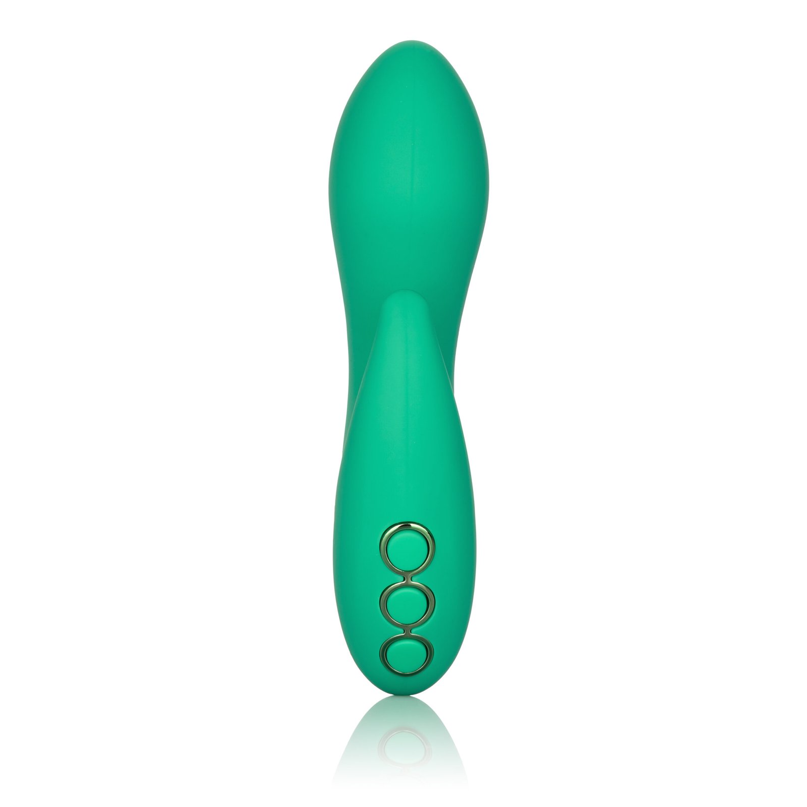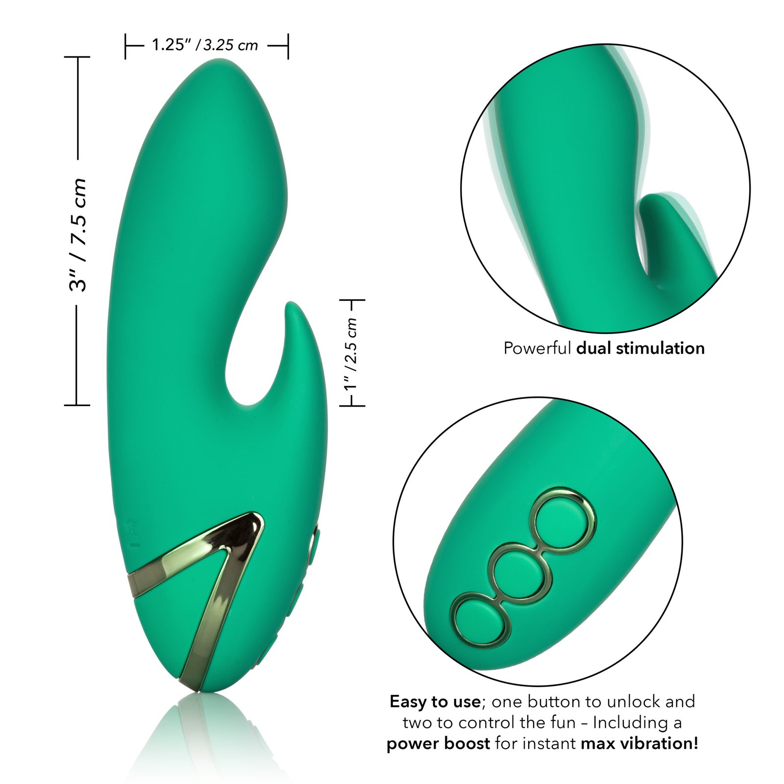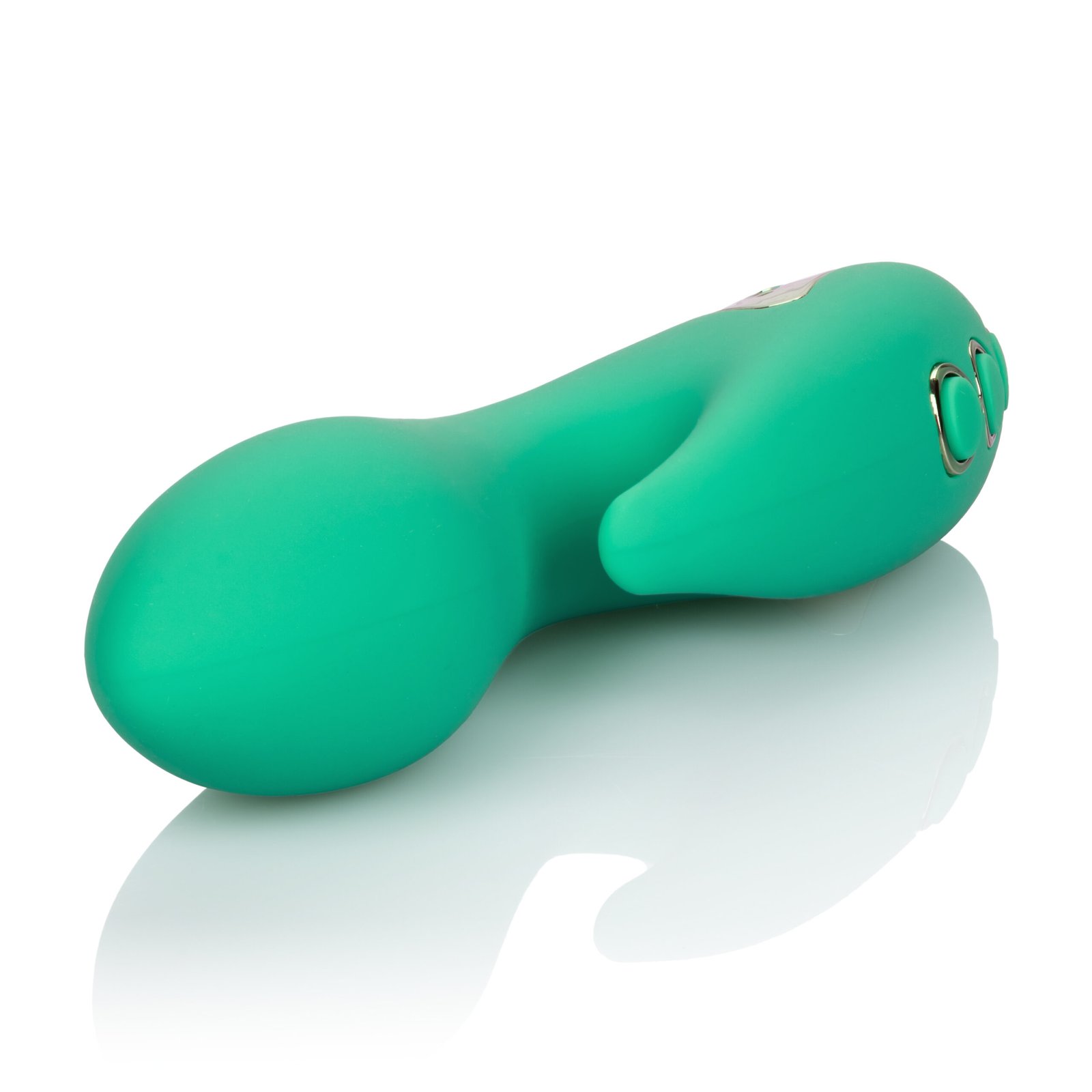 Indulge in waves of pleasure as the California Dreaming Sierra Sensation moves you in all the right ways. The naughty travel-size rabbit is ready for your next adventure with a flexible teaser, 10 sensational vibration functions and a thrilling Power Boost action. The sensually contoured teaser tip and curved shaft are superb for caressing internal and external pleasure points. For an ultra smooth surface, this curved shape vibe and teaser is covered in a premium silicone with sleek profile buttons.