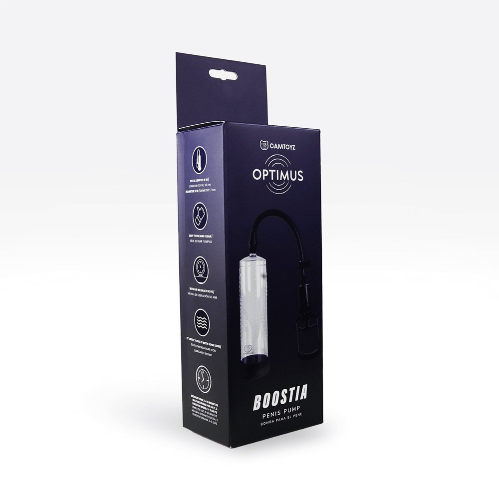 Discover the power of the Boostia Penis Pump, from the Camtoyz Optimus line. This innovative device is designed to enhance your intimate moments, helping to increase circulation and achieve firmer erections. Ideal for foreplay with a partner, Boostia turns pleasure into a fun and exciting experience.