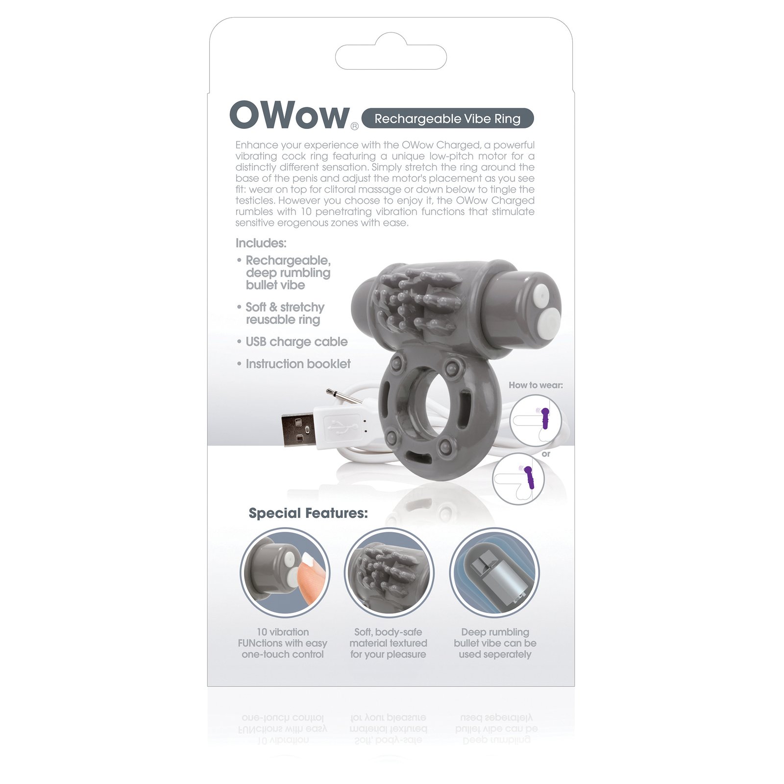 The Charged OWow is the ultimate rechargeable vibrating cock ring, featuring a brand new low-pitch motor for a distinctly different sensation that both partners can feel deep inside. This powerful sex toy for couples boasts 10 penetrating vibration and pulsation functions that rumble, rather than buzz, and provide an undeniably more satisfying experience. Powered by the famous Vooom bullet, the Charged OWow stretches wide to fit most sizes thanks to the rings soft 100% body-safe SEBS material and fits snug, but not too tight, for an enhanced experience.