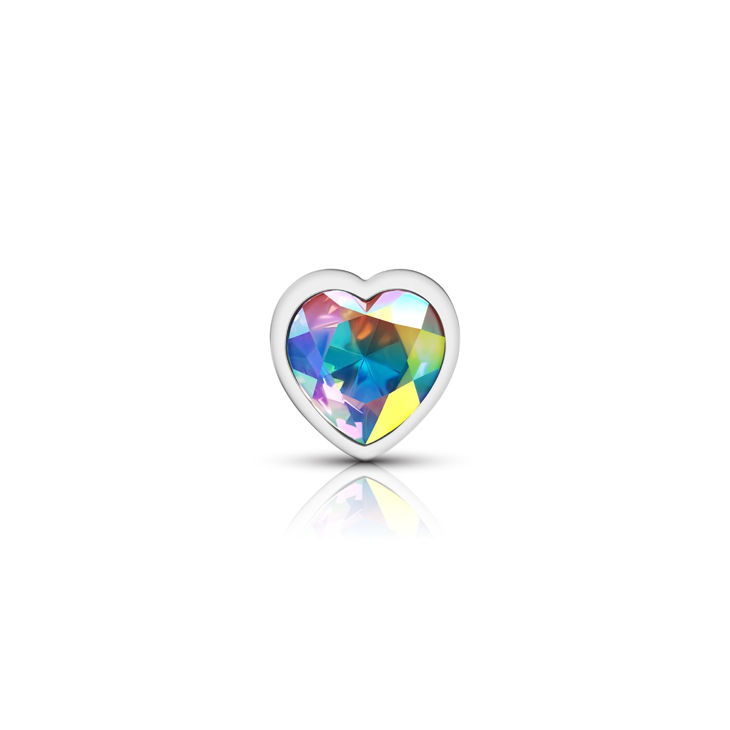Clear Iridescent Heart Gem Silver Metal Plug – Md