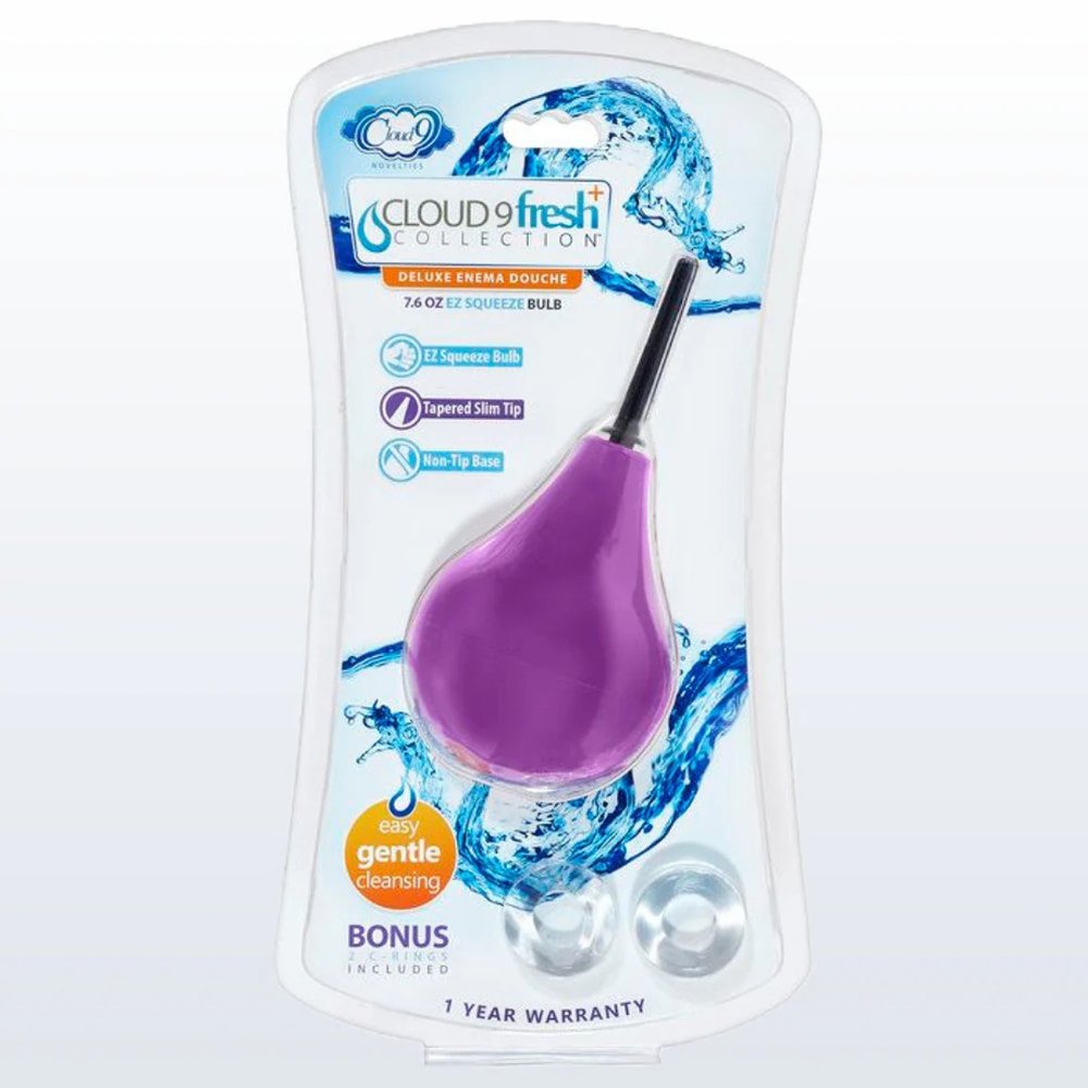 Cloud 9 Fresh and Deluxe Anal Soft Tip Enema Douche 7.6oz With Ez Squeeze Bulb and 2 C-Rings