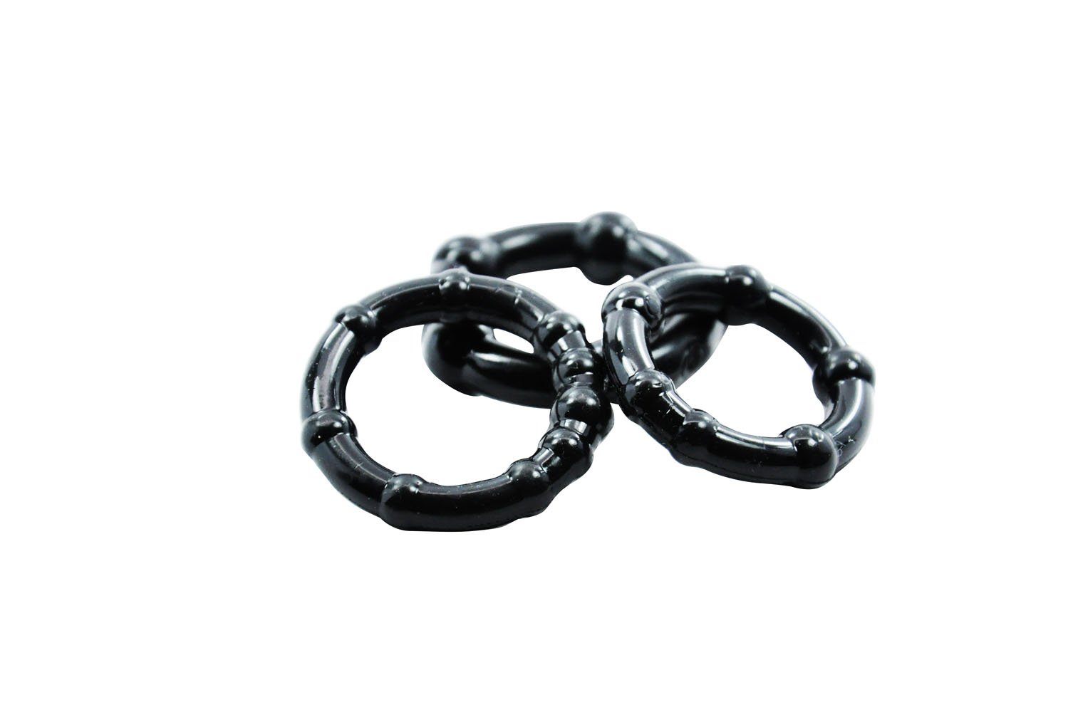 Cloud 9 Novelties Super Stretch Beaded Stay Hard Ring Combo Pack Black includes three sizes of super soft skin safe rings. These ring can help you stay harder longer and prolong ejaculation. Cloud 9 cock rings are made of phthalate free, non-toxic thermoplastic rubber TPR. The smallest ring is for maximum erections; the medium ring is for harder erections; the large ring can encircle the upper part of your scrotum to help prevent premature ejaculation. The rings are comfortable and made specifically for your safety and hygiene during your intimate play. Cloud 9 cock rings can be used individually or together. Cock rings give you a longer lasting erection by trapping the blood supply in the penis and intensifying your orgasm! Cock rings are ideal for men suffering from erectile dysfunction ED and premature ejaculation. Always use a water based personal lubricant with this product for maximum pleasure. Do not wear a cock ring for more than 30 minutes at a time.