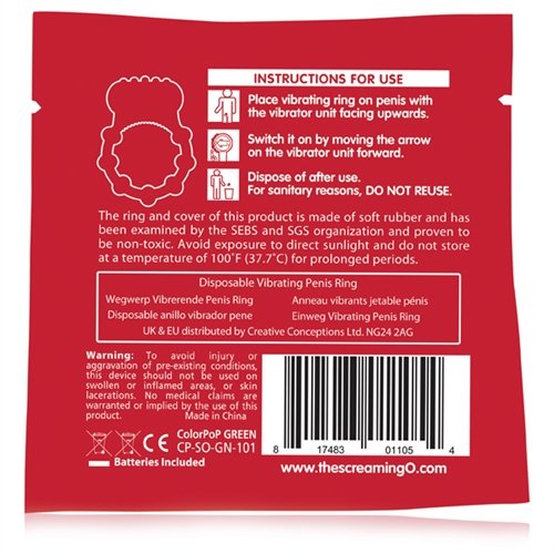 The Screaming O Vibrating Ring is the award-winning sex secret that helps couples have better more satisfying sex. With pleasure knobs for him and ticklers for her couples enjoy mutual stimulation with vibration that buzzes throughout the entire ring. Now available as a convenient ColorPoP Quickie couples can enjoy vibrant vibration at home or on the go with a disposable design they can take anywhere.