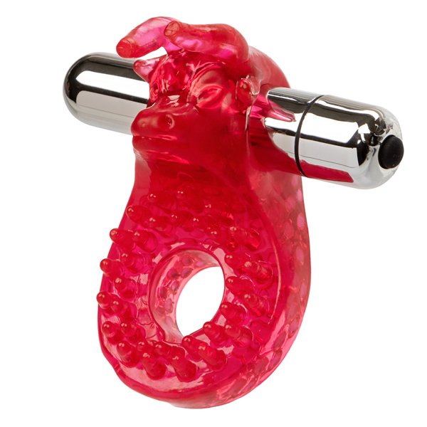 Ride the raging bull for the ultimate lovemaking experience. This durable, stretchy enhancer provides firm support for him, and exciting stimulation for her. The EZ push button stimulator is removable.