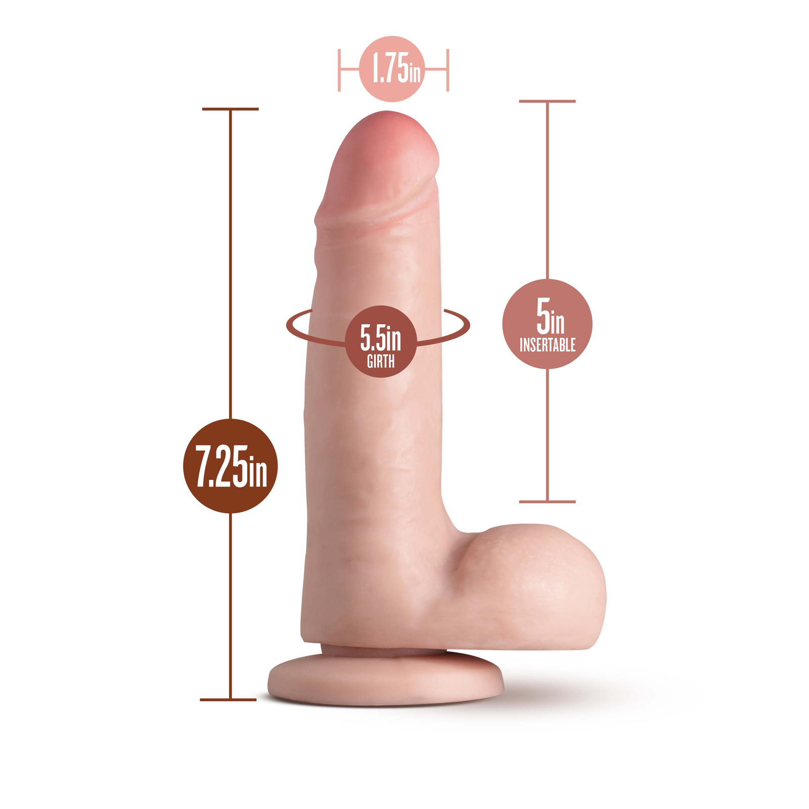 7.25″ (18.42 cm) Length, 5″ (12.7 cm) Insertable Length, 1.75″ (4.46 cm) Width
