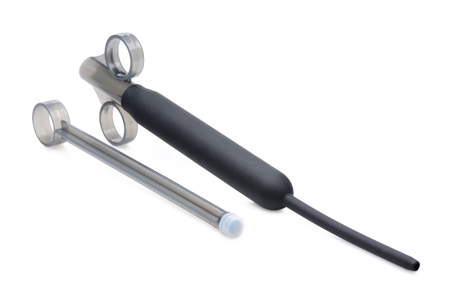 This lubricant silicone lubricant launcher is equipped with an extra long and flexible hose for deep application of lubricants into your hole of choice. For those playing with longer toys needing lubrication past normal depths, this launcher is perfect for sending lube to your deeper parts to make insertions more comfortable past entry.