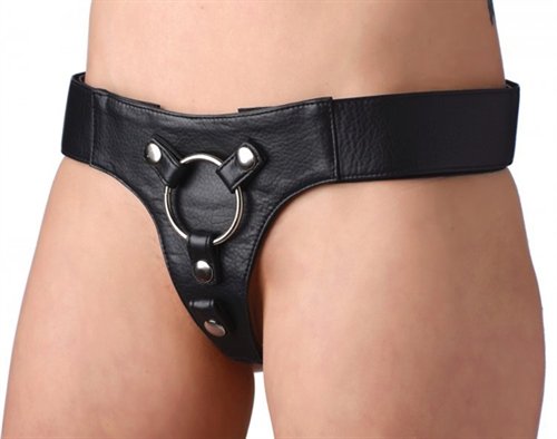 Indulge in your strap on fantasies with this fully adjustable and comfortable dildo harness from Strap U. With a wide band supportive harness that adjusts via two Velcro straps, you can insert your favorite flared base dildo into the O ring. Just snap it into place and you are ready to start penetrating your partner with the dildo of your choice. The waistband offers total adjustability, and will accommodate most sizes. The back supporting strap offers a more form-fitting design that hugs the contours of your body, allowing you to move freely. The snap-in design allows you to change out the included ring with one of your own if you desire a different size or material. Most cock rings will work perfectly. This harness system is easy to maintain making this an ideal choice for all your strap on adventures.