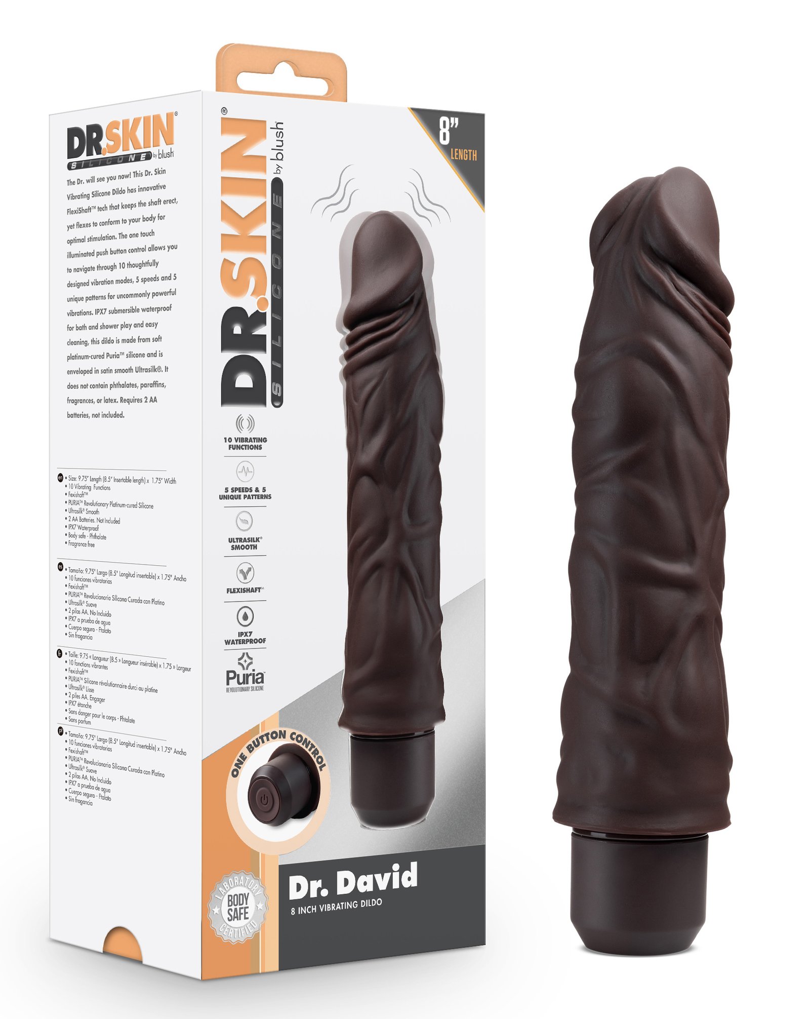 Dr. Skin Silicone – Dr. David – 8 Inch Vibrating Dildo – Brown