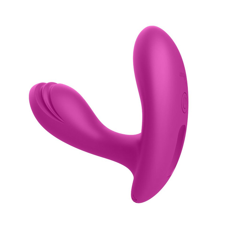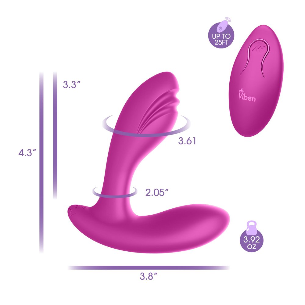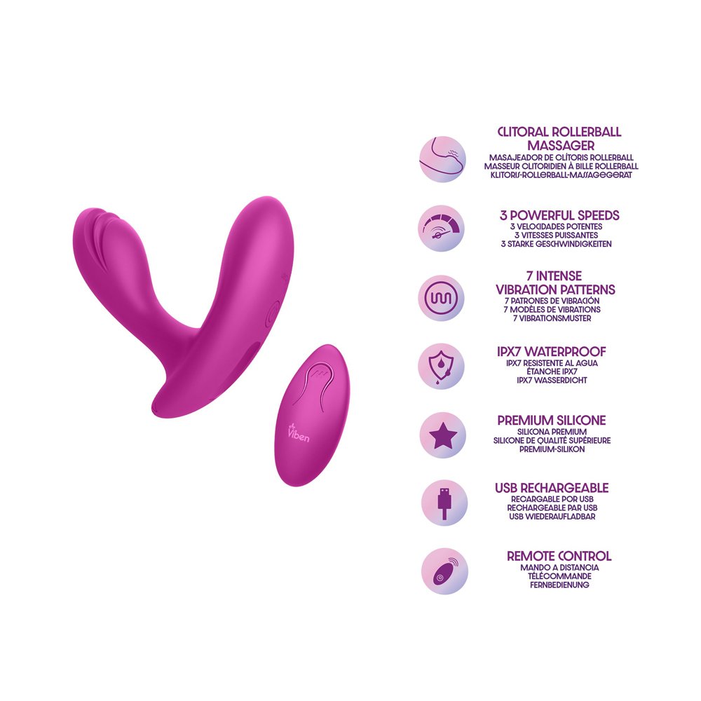Remote controlled G-Spot vibe with a unique rollerball feature for explosive clitoral stimulation. To turn on, press and hold the power button on the toy for 3 seconds, then press the remote’s power button to turn on the remote. Change vibrations by clicking the function button on the remote or the toy. May be used with our without the remote control.
