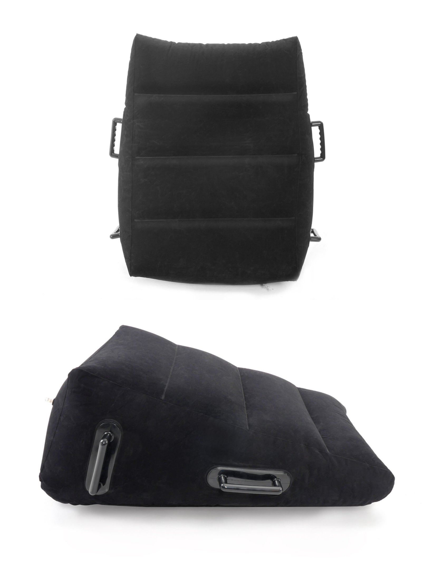 Indulge in your wildest fantasies with this Inflatable Position Master. The slanted, flocked design allows you to relax in any position without sliding off, while the EZ-Grip love handles are perfect for maintaining difficult positions without losing your rhythm. The air seal valve makes inflating the wedge a snap, and when the fun is over, simply deflate the Position Master and it’s ready to go where you go. It’s perfect for those romantic getaways and no one will know what’s in your bag! Do it all with greater ease… no matter what position you’re in! And lubricant doesn’t even show up on the surface, making it easy to clean too!