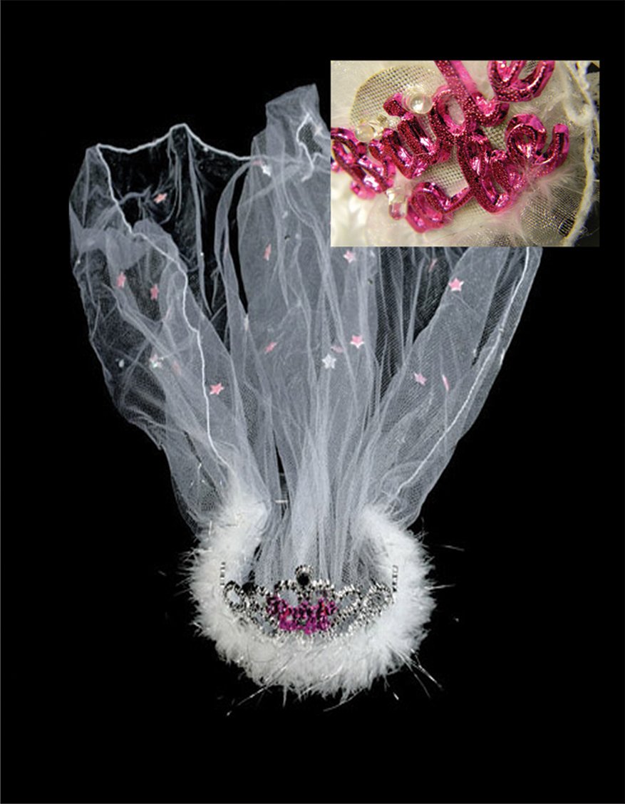 Flashing Bride-to-Be Tiara With a White Fur Veil