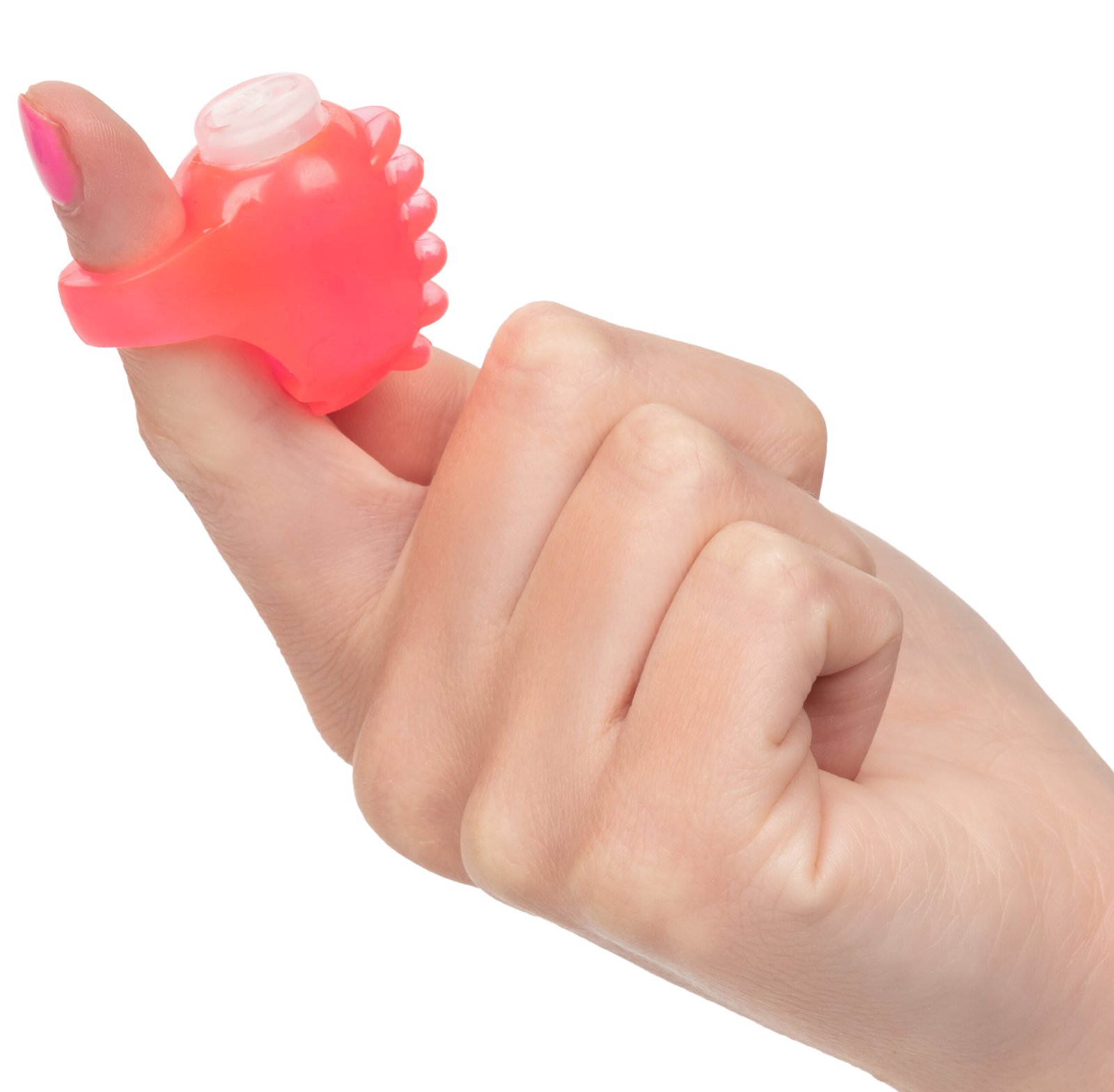 Bring back the art of foreplay with the teasing Vibrating Finger Teaser. The marvelous mini teaser easily slides powerful vibrations onto any fingertip with the soft stretchy teaser ring. Slip the soft and stretchy finger teaser onto your finger and delight yourself or your lover with the gently ribbed surface and shuttering bullet vibrator. These travel-ready teasers are the perfect toys to bring on any vacation or a thrilling way to spice things up in the bedroom.