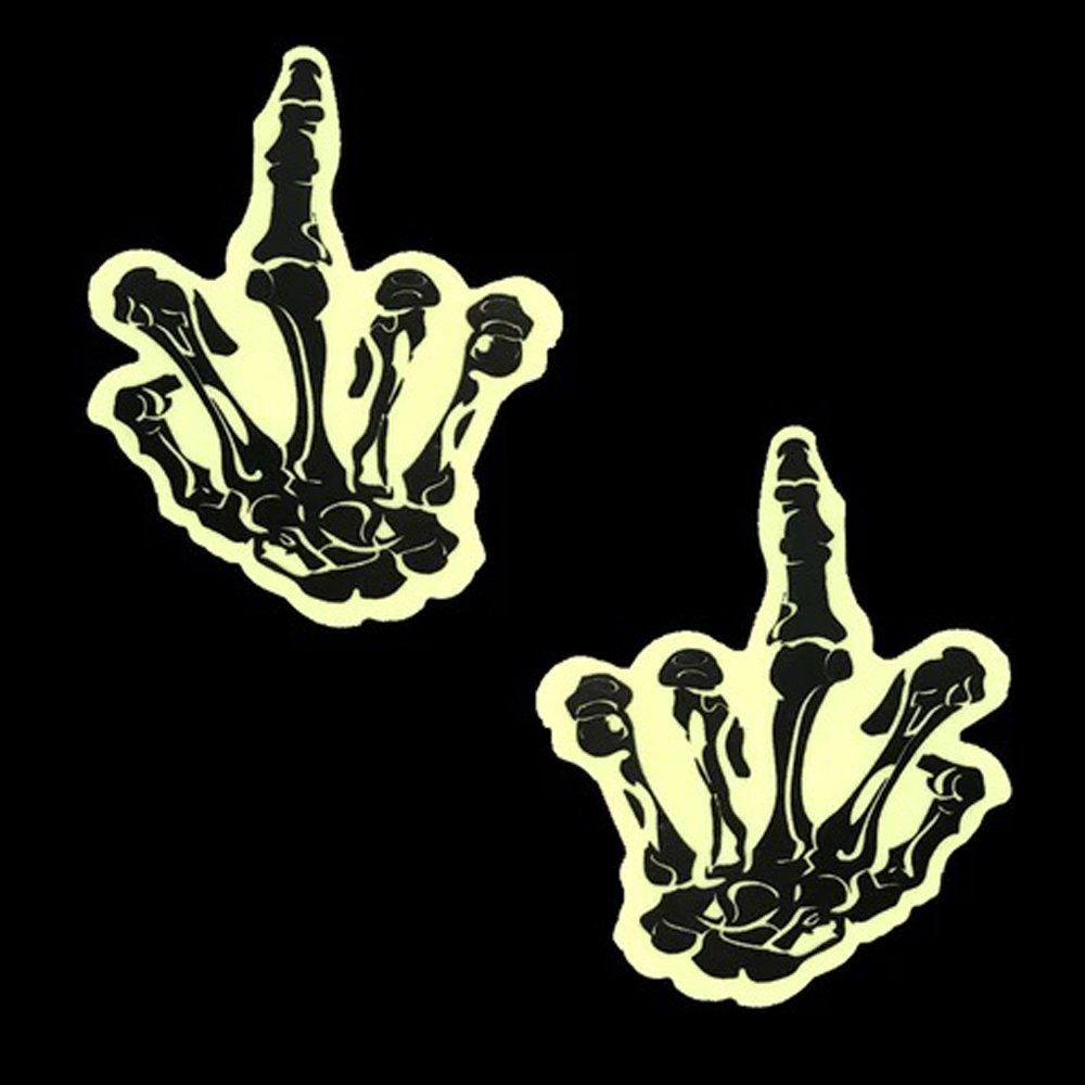 Fuck You Glow in the Dark Skeleton Hand Nipple Cover Pasties