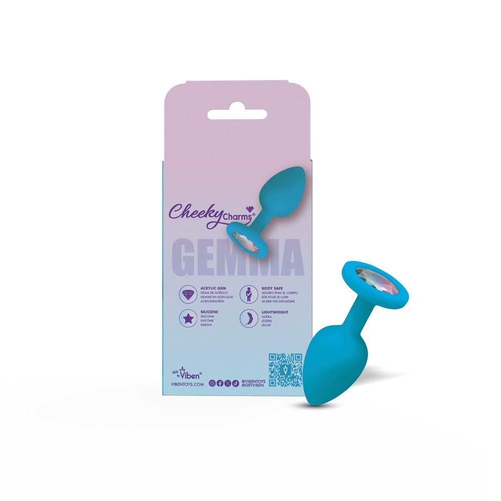 Gemma Clear Iridescent Gem Teal Silicone Plug – S