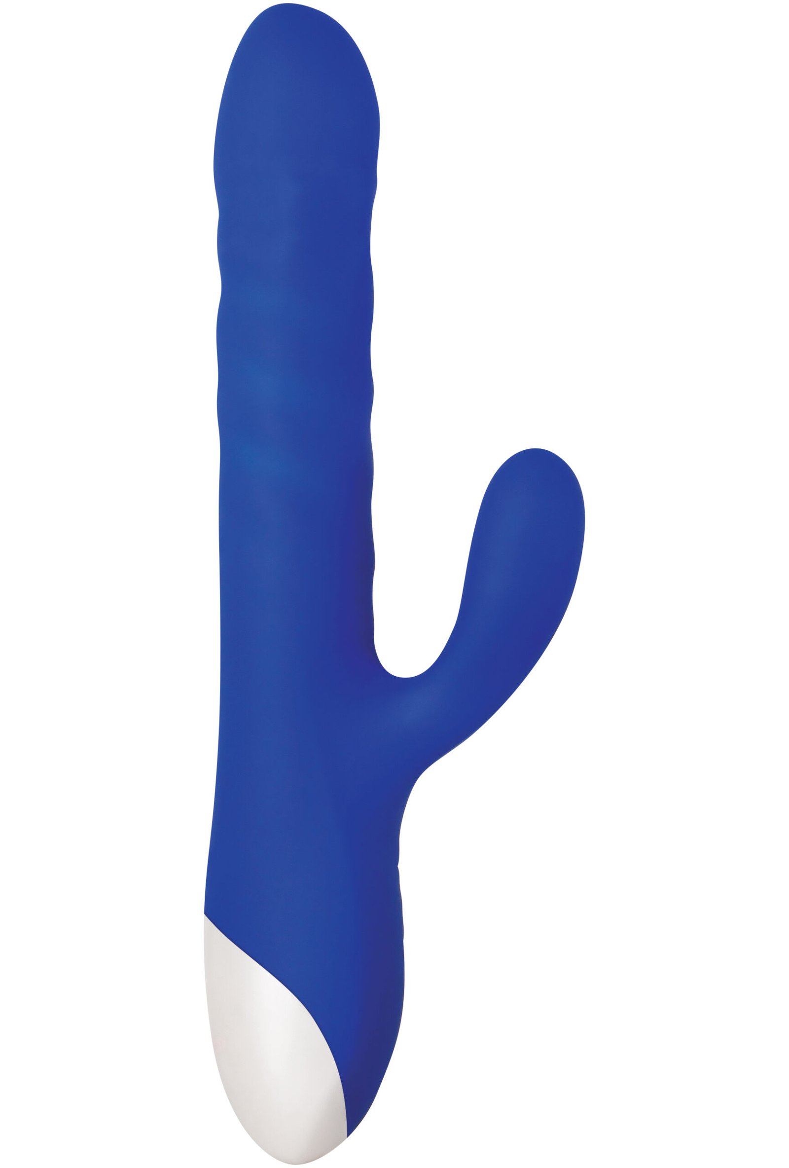 This powerfully intense vibrator is a guaranteed home run! The thrusting action and twirling beads in the tip of the shaft deliver a tantalizing internal sensation with three delicious speeds, and the high scores really add up with the double-motor rabbit ears! Two large, floppy, flexible clitoral stimulators, each with their own 10-speed motor, resonate deep into the clitoral nerves which extend well inside the body. This rumbling ride pushes the boundaries of extreme pleasure, and the level of intensity is up to you! Enjoy in the bath or shower as it’s completely submersible, and recharge when you need to via USB.