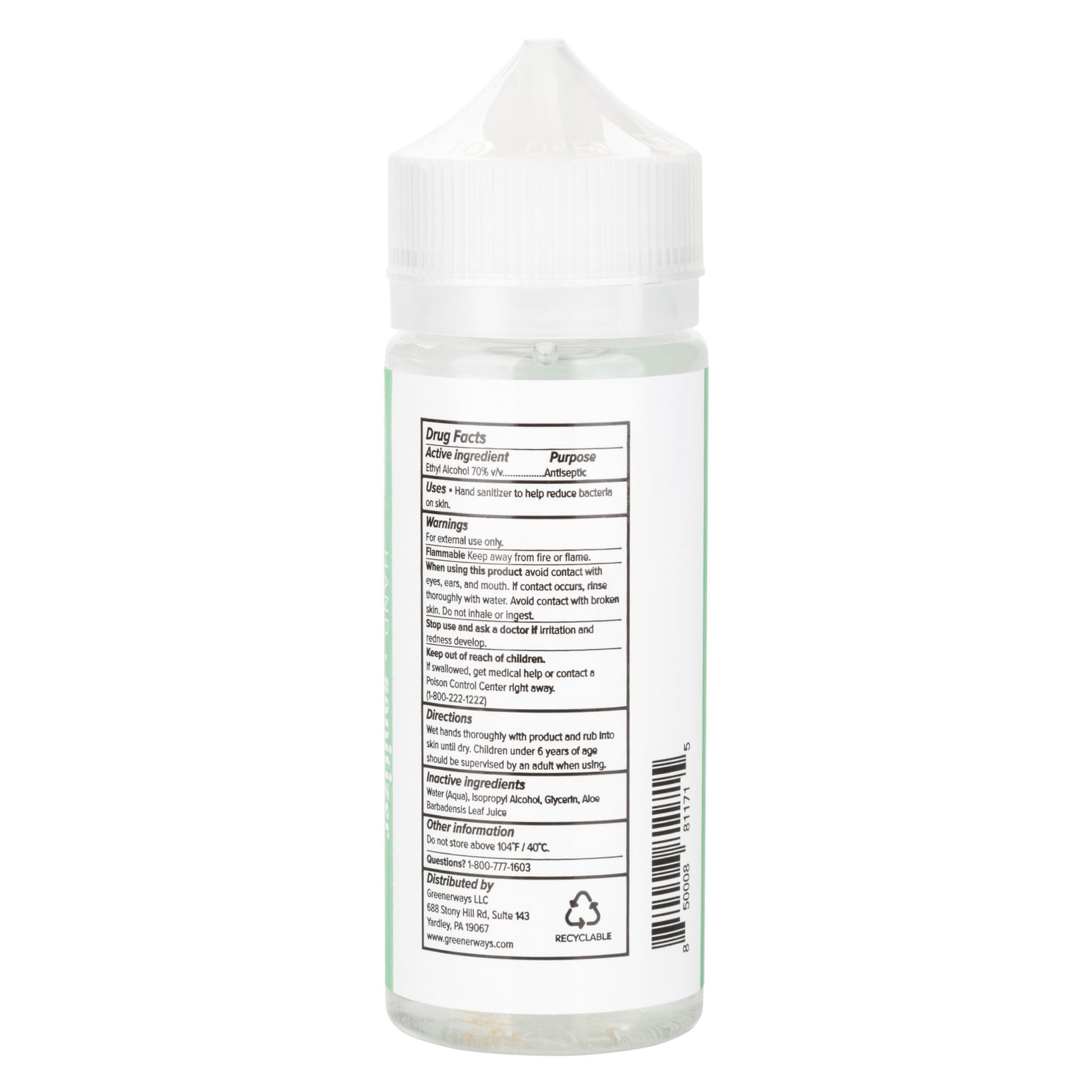 Inactive Ingredients: Water (Aqua), lsopropyl Alcohol, Glycerin, Aloe Barbadensis Leaf Juice