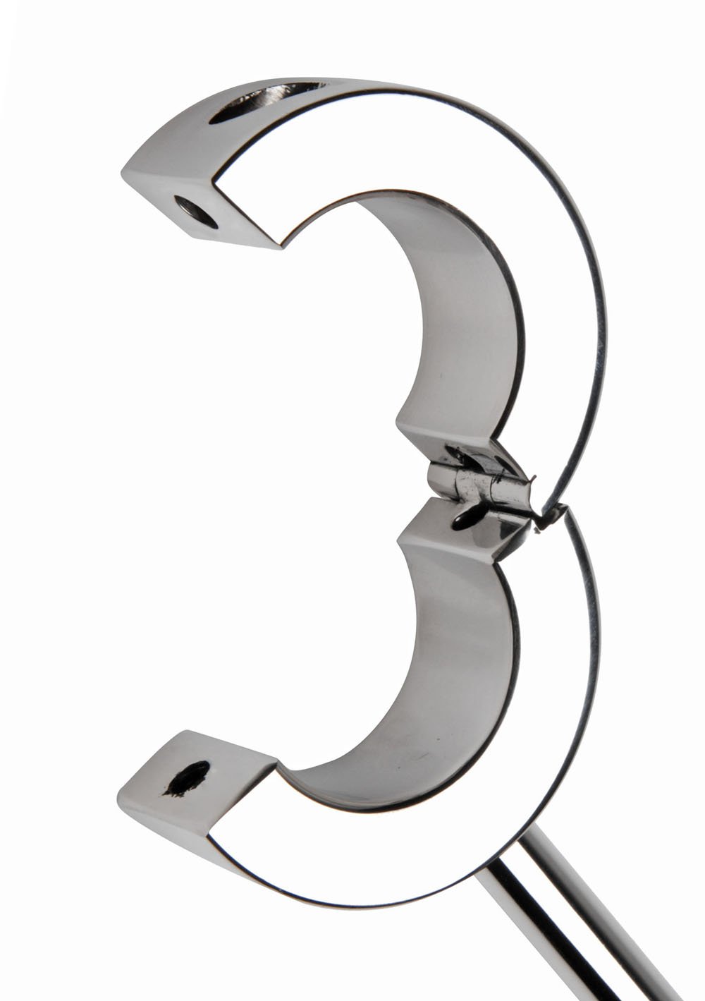 Pin their balls to the floor and experience the ultimate in humiliation and control with this unique bondage piece. Designed to clamp down around the scrotum, it has a non-removal base, designed to be screwed into the floor or other mounting surface. Two screws are included. Just attach the base to a sturdy, flat surface, lay them down, and enclose their balls in the smooth stainless steel cbt stretcher. The allen wrench screw ensures that there is no escape without the proper tools, so they will be held down and at your complete mercy throughout their confinement. We recommend that this device be used lying down to avoid movement and possible injury. Note: due to the fixed nature of this device, care should be taken during use to avoid injury. Disclaimer: these products as with all products on this site are supplied as is. No warranty is given either implied or expressed. Products are intended as novelty only, and no representation is made or implied as to their suitability or safety for any particular use. Purchasers use the products entirely at their own risk. The manufacturer or re-seller is not liable for any direct, indirect, incidental or consequential damage or loss howsoever arising caused by use or misuse of the products. This includes, but is not limited to, damage to the products and personal injury or damages due to use or misuse.