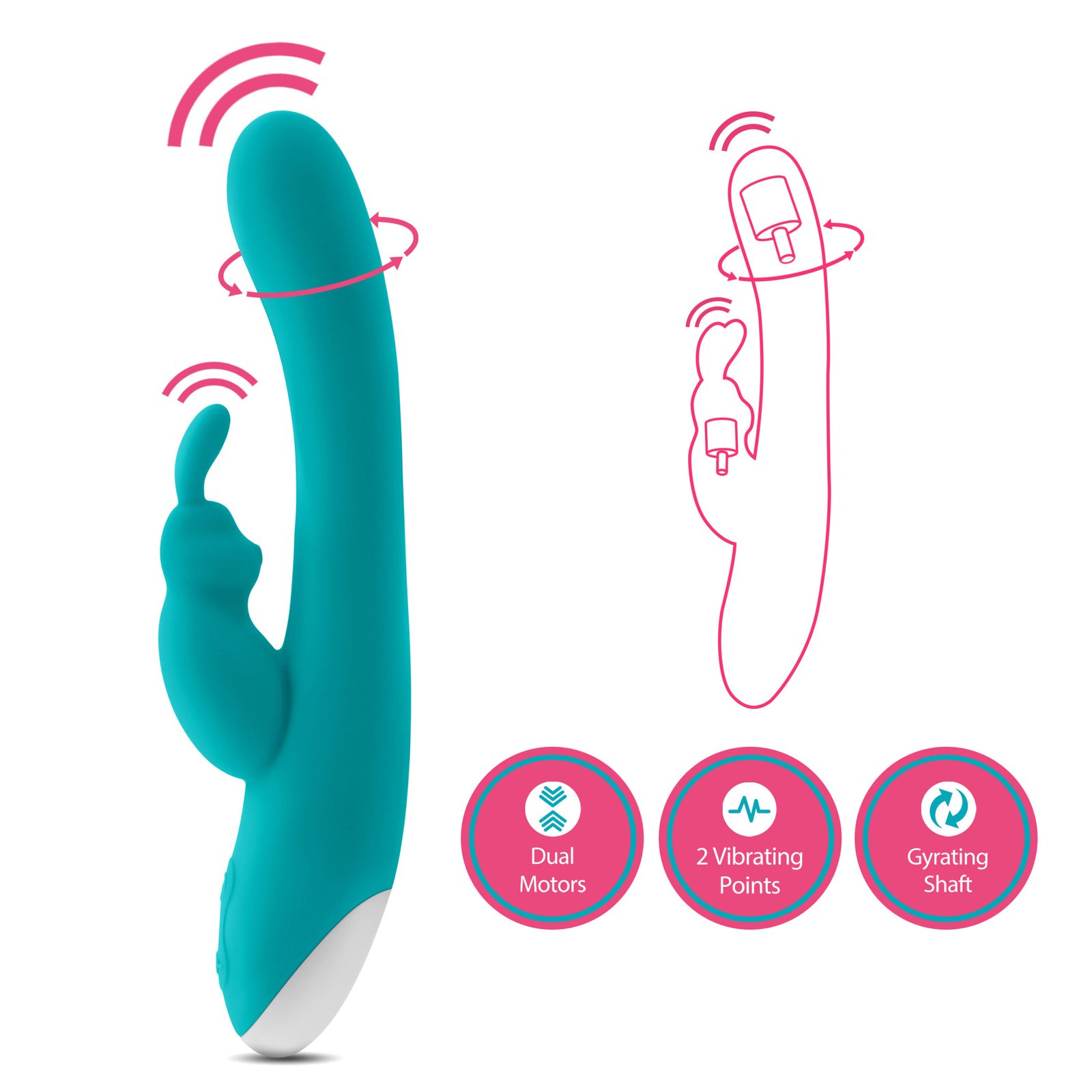 Sultry, sexy, and slim, Rave Rabbit features 7 vibrating functions, 2 points of vibration, and a 3 speed gyrating shaft! Rave Rabbit’s petite shaft and head offers thrilling G spot sensation, while the contoured clitoral stimulator excites your most sensitive spots. Explore its powerful vibrations solo or with a partner, in your bedroom or in the bath. Made of smooth silicone, it is body safe and pthalate-free. Rave Rabbit is IPX7 waterproof, USB rechargeable, and easy to clean.