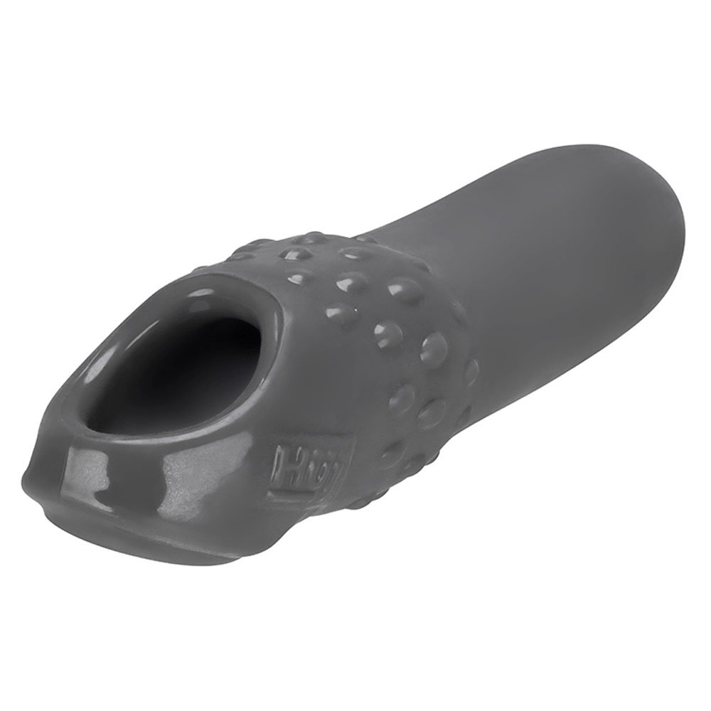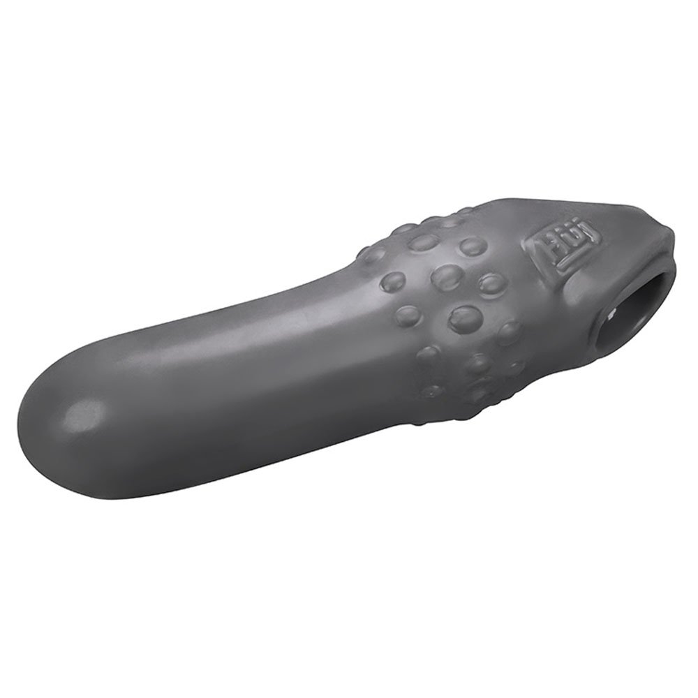 Slick and smooth cocksheath swells at the base with raised nubs for extra stretch and more stimulation. Made of plue Silicone thats rubery smooth TPR, Silicone blend. Adjust-fit insert for custom fit, textured inside shaft to get you off. Swell makes you thicker and longer, works hard or soft.