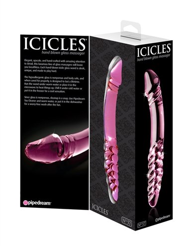 Enjoy double the fun with this elegant double-sided glass massager. Each end features a tapered tip to ease insertion while cleverly curved for explosive G-Spot or P-Spot stimulation. Either end boasts unique textures – a bulbous head and a ribbed swirl – that offer endless possibilities for pleasure.