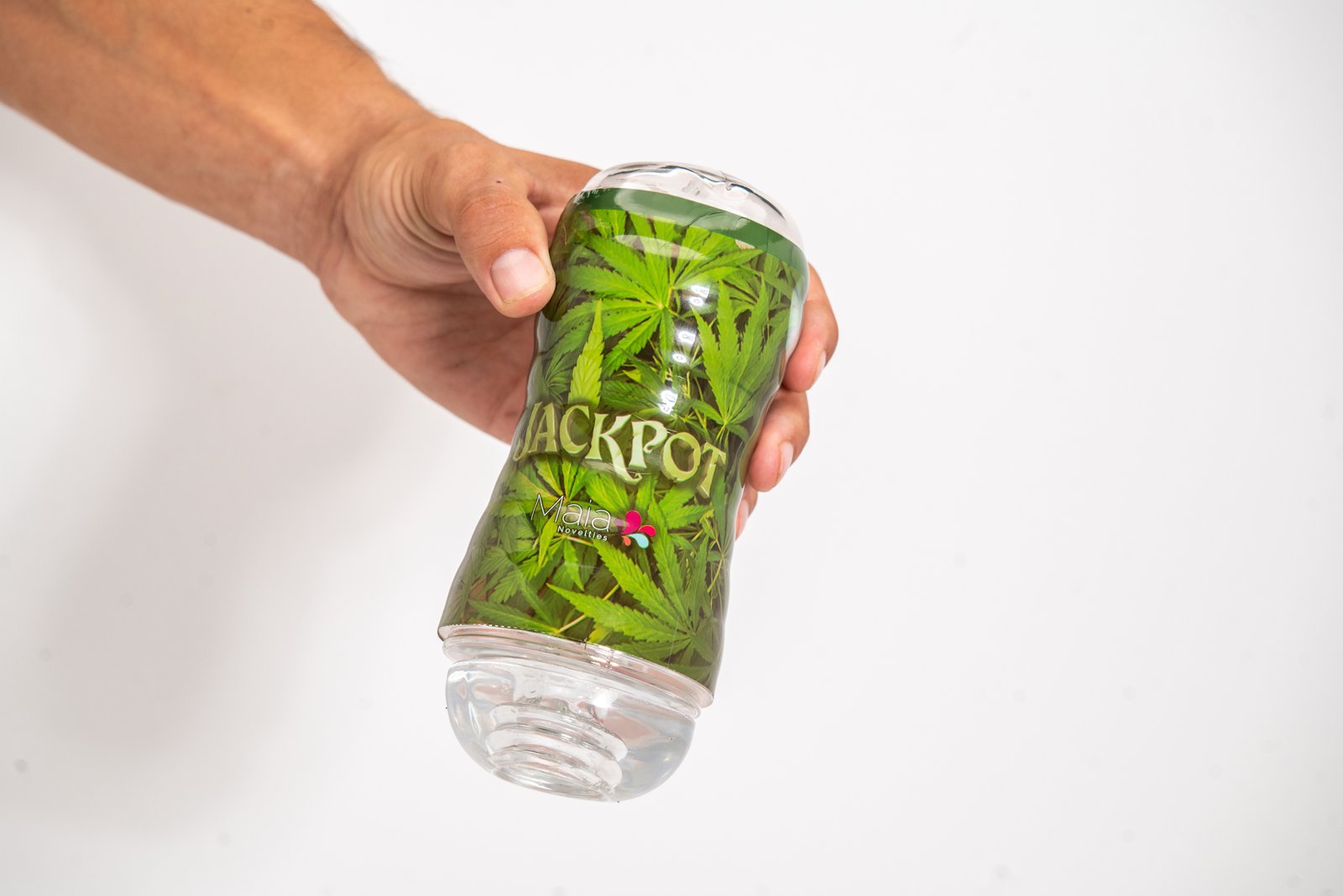 The first Stroke and Toke masturbator is the perfect addition to your smoke shop or adult retail establishment. The Jackpot stands out with its Cannabis Leaf Print Wrap. When you unwrap the Jackpot youll discover an aircraft cup that doubles as a storage case. The Jackpot is made from a super stretchy TPE material and has an internal texture to provide intense stimulation. Closed end design provides superior suction.