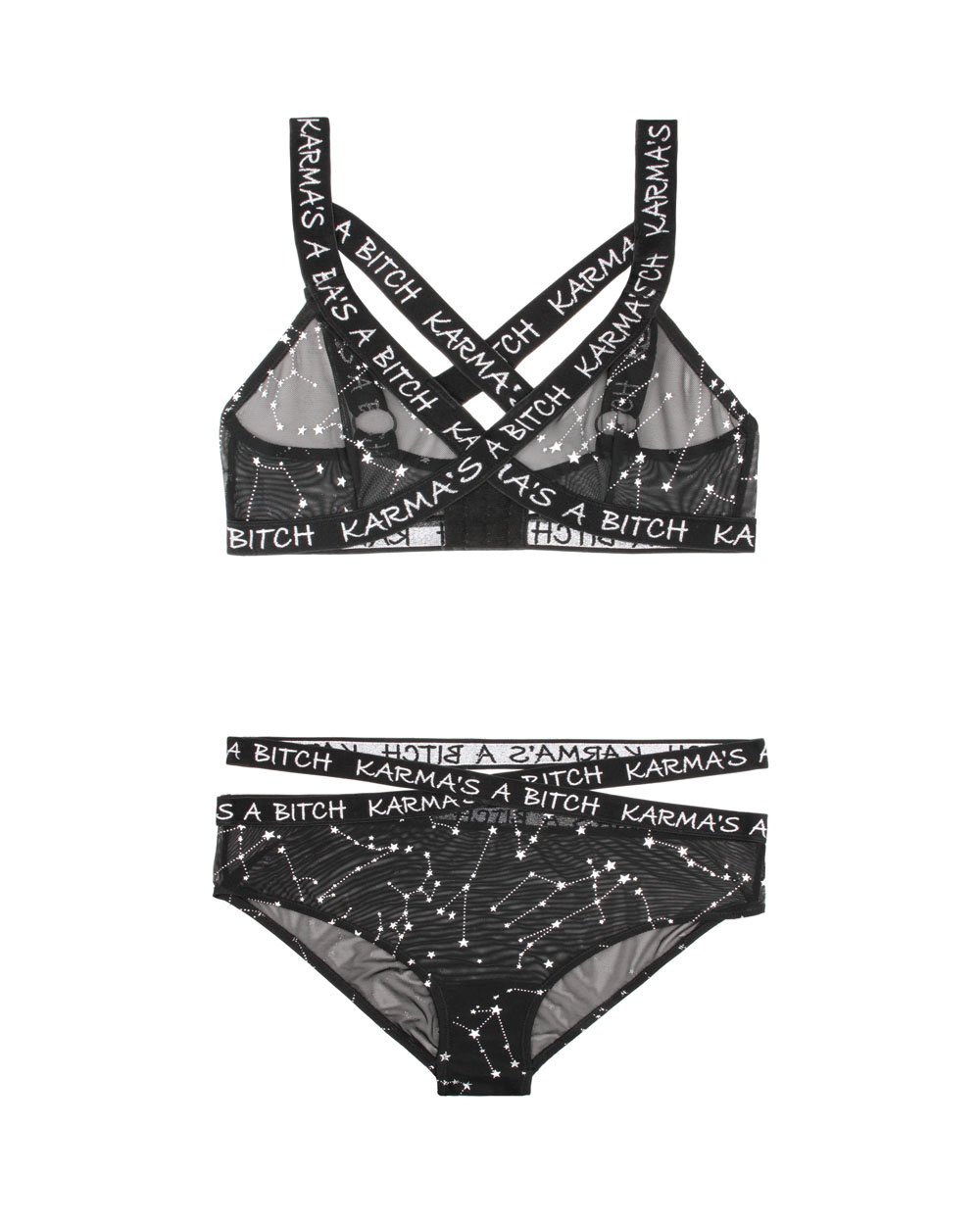 Karma’s a Bitch Bralette and Cutout Panty Set – Black – S/m