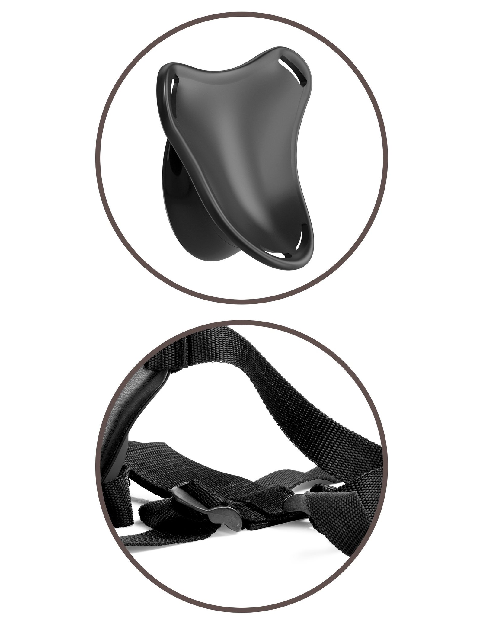 The patented* Beginner’s Body Dock Strap-On Harness takes strap-on play to a whole new level! It’s as simple as attaching your favorite King Cock Elite silicone dildo (or any dildo/vibrator with a suction cup**) to the suction dock. The Body Dock nylon straps can be easily adjusted to fit most sizes and body types.