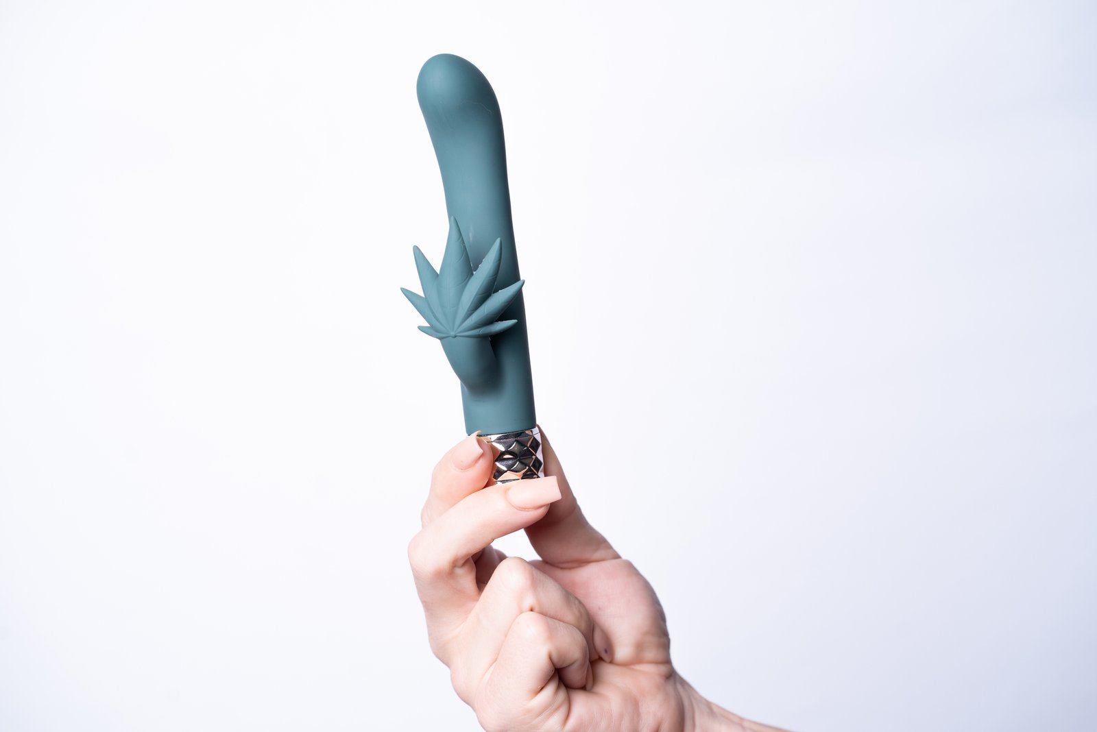 Double your pleasure with the Maia Novelties Kusha. The 10-function dual motor design provides for intense clitoral, vaginal, or g-spot vibration. The Kushas clitoral stimulator is a hemp leaf design that covers and caresses your pleasure spot. The bulbous head allows provides g-spot stimulation while the sufficient shaft allows for vaginal pleasures. The Kusha is covered in 100% Medical Grade Silicone for a body safe experience and is fully rechargeable. Its 100% submersible design allows Kusha to be used in the bath, pool, or shower.