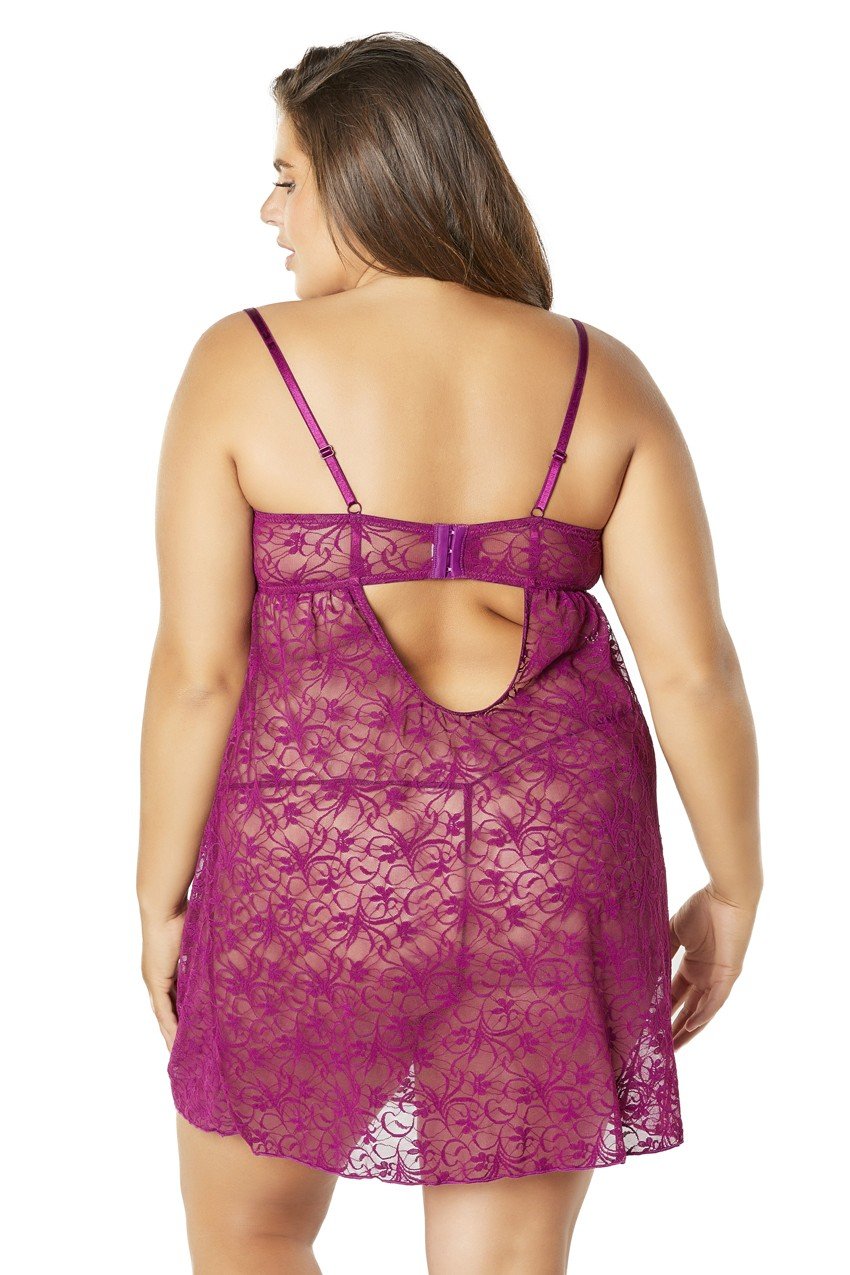 Lace Empire Babydoll With Functional Tie Shelf Cups G-String – Amaranth – 3x4x