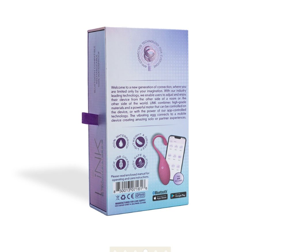 Welcome to a new generation of connection, where you are limited only by your imagination. With an industry leading technology. Enable users to adjust and enjoy their device from the other side of a room or the other side of the world. LINK combines high-grade materials and a powerful motor that can be controlled on the device, or with the power of the app-controlled technology. The vibrating egg connects to a mobile device creating amazing solo or partner experiences.