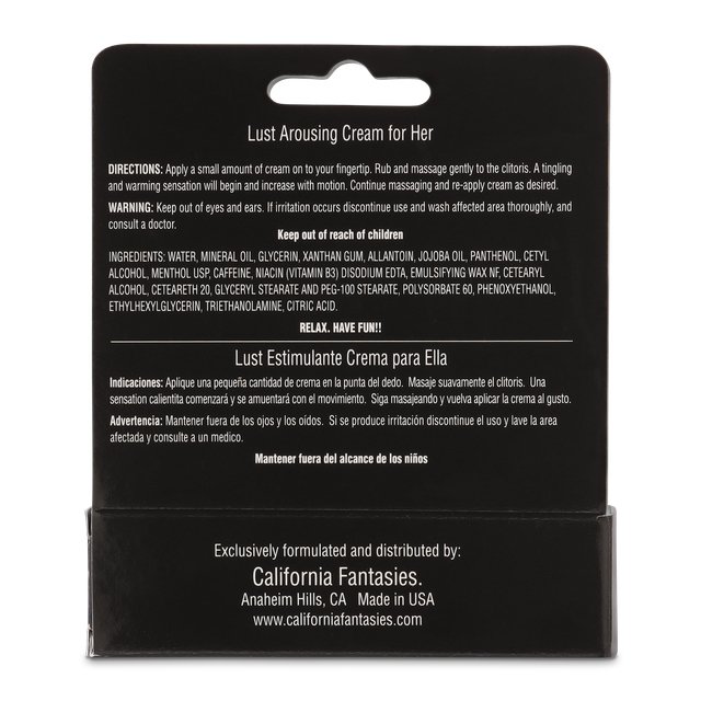 Lust is a female arousing cream that will cause instantaneous arousal. Lust for women will assist in achieving greater orgasmic pleasure. Lust is the turn on cream for unbelievably intense lovemaking and climaxes.