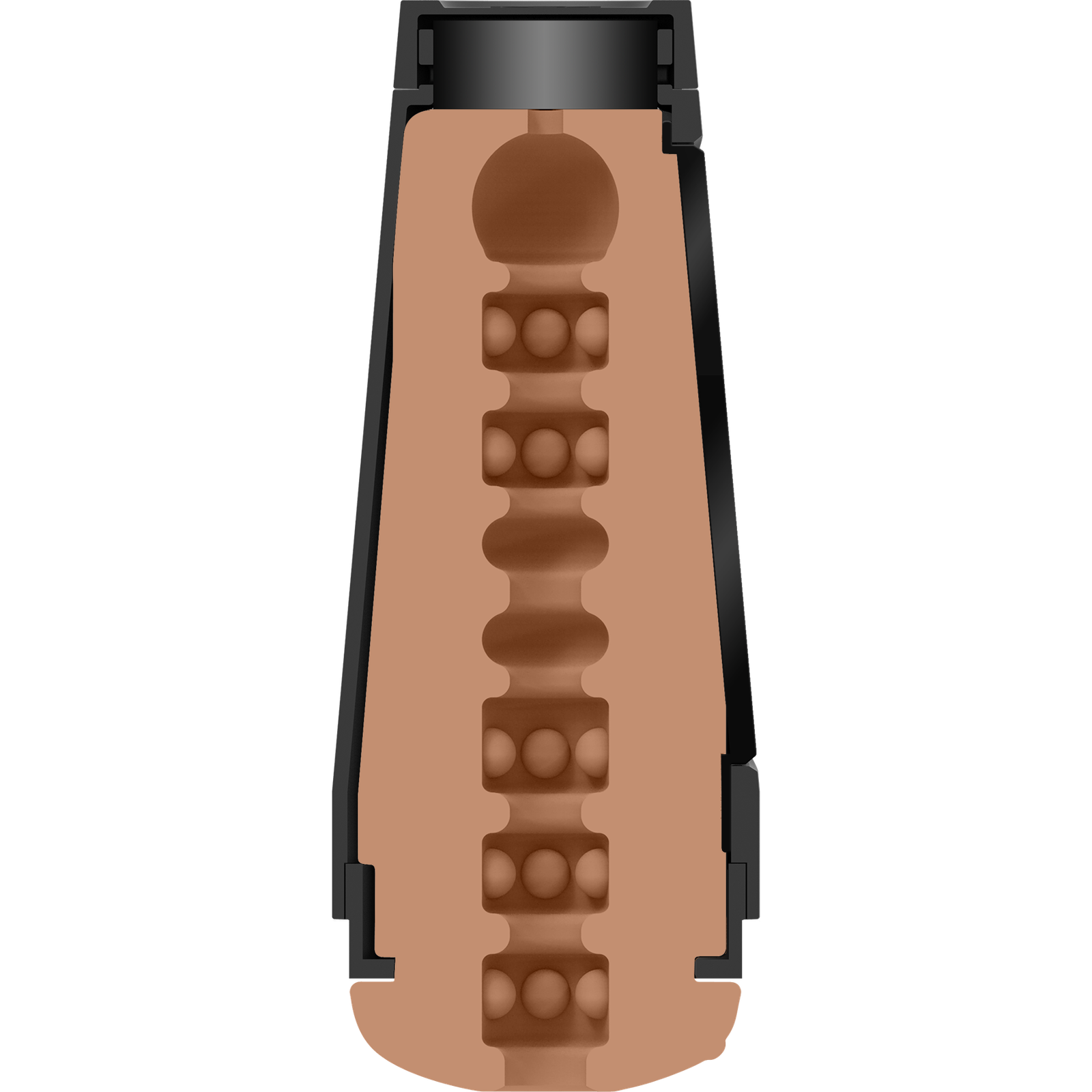 Doc Johnson’s Main Squeeze line puts the power in your hands thanks to it’s squeezable plate built into the hard cases that lets you control the pressure and tightness of each stroke. The base of the case can also be twisted to adjust suction strength.