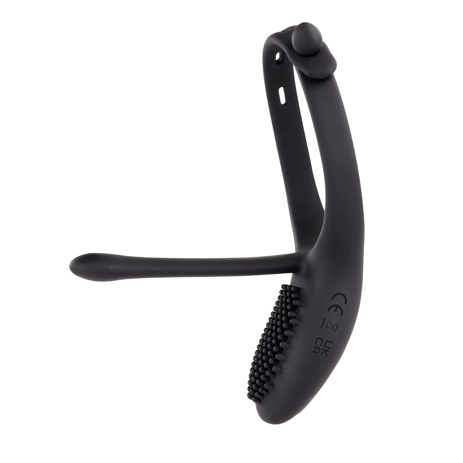 Adjust this vibrating C-ring to your ideal girth with 4 sizes that lock in for comfort and ease. Two powerful motors deliver vibrations in both the chunky nubbed stimulator and the long silicone stem thats designed to nestle alongside the shaft. Motors operate independently with the remote control which has a range of over 100 feet. Magnetic rechargeable, fully water submersible and easy to clean.
