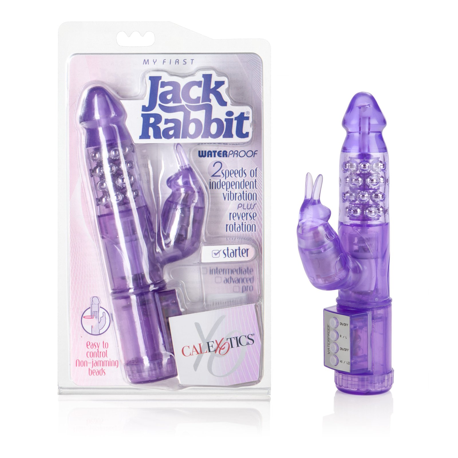 Designed with the first time user in mind. Simple easy to use Jack Rabbit. Soft supple head. Flickering bunny ears. 2 speeds of independent vibration. Independent reversible rotation. Non-jamming synchronized rotating beads. Easy push button controls. EZ load battery pack.