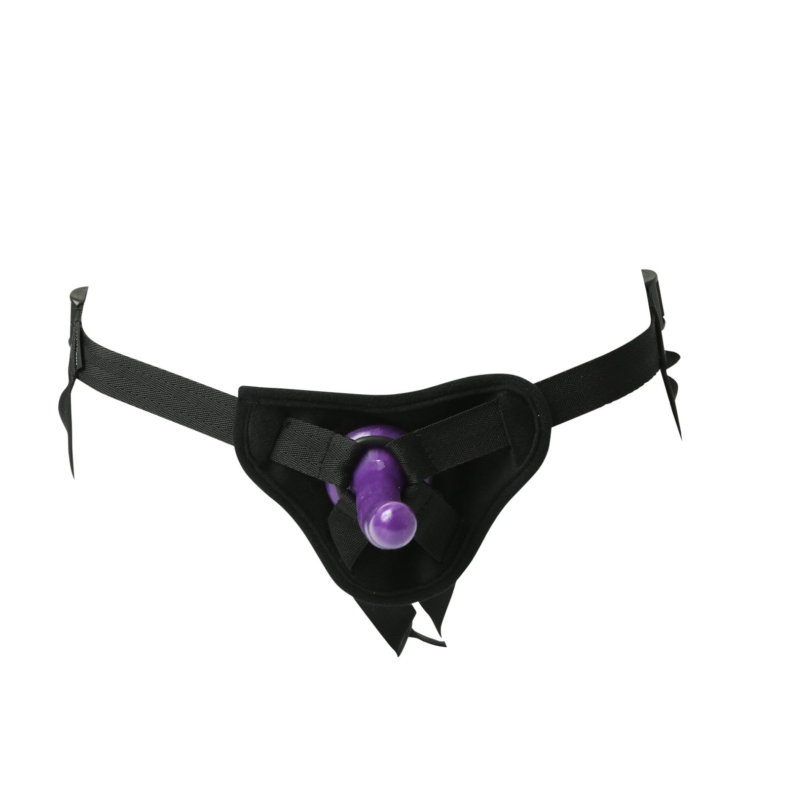 Perfect kit for pegging! This 4-way strap-on adjusts up to 60-inch hip size. Includes a slender starter size “Please” silicone dildo and the strap-on accept s other 1.25 inch diameter dildos.